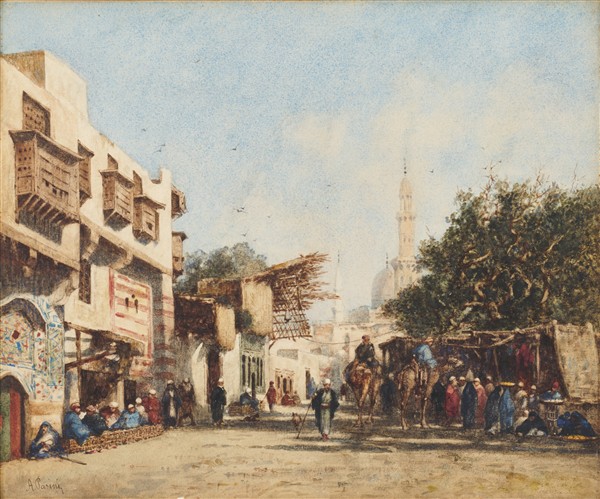 Alberto Pasini "Veduta orientalista con minareto sullo sfondo" acquerello su ca