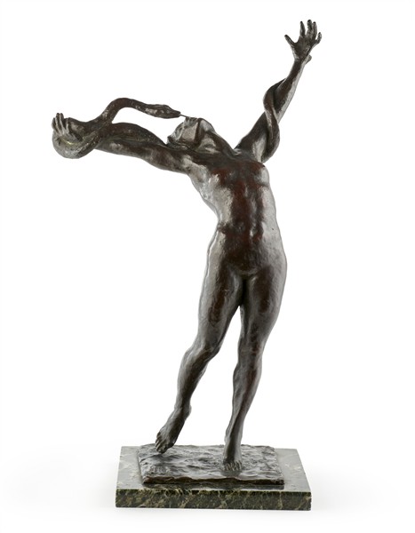 Franco Bargiggia "Eva ed il serpente" scultura in bronzo (cm 52x33x22) su base