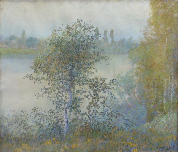 Michele Cascella "Scorcio lacustre" 1919 pastelli colorati su carta (cm 45x52) f