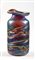 MANIFATTURA LOETZ attr. Vaso con bocca svasata asimmetrica in vetro iridescente sui toni del blu, viola e rosso con filamenti in vetro applicati a rilievo. XIX - XX secolo, Germania. Cm 20x10.