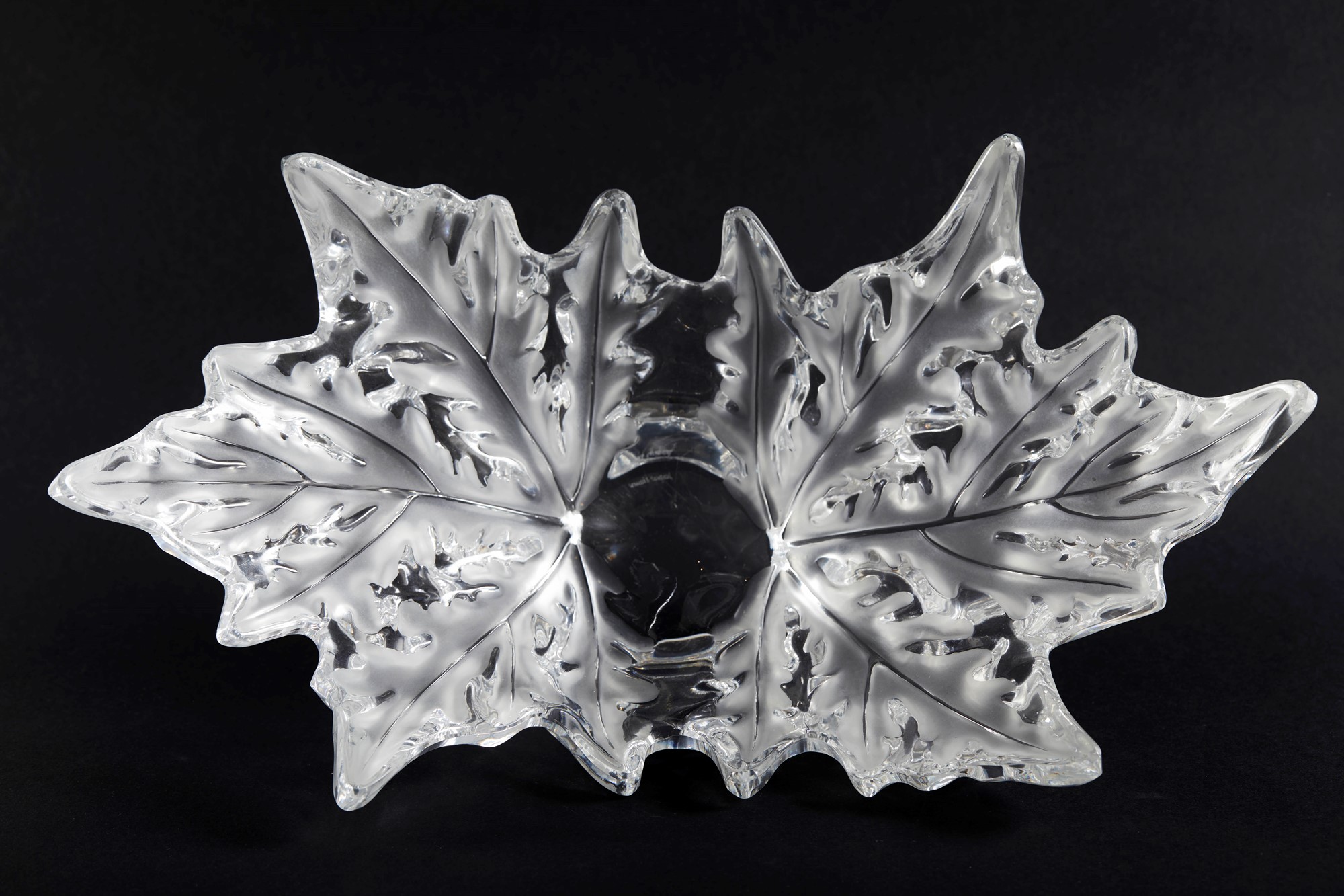LALIQUE "Le Champs-Élysées". centrotavola in vetro. XX secolo. Cm 18,5x45,5x25,5. Sotto la base reca firma a punta di diamante Lalique France.