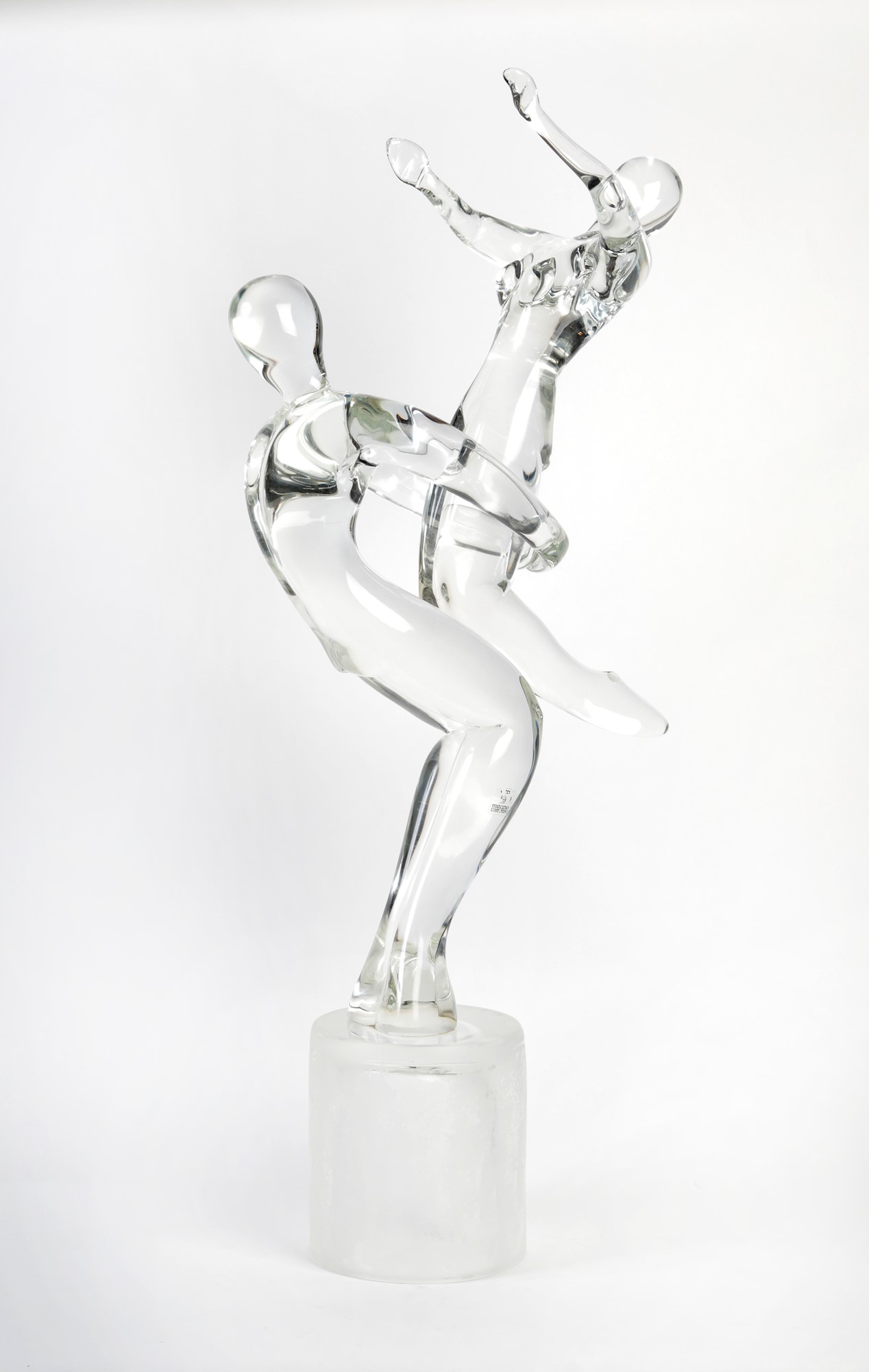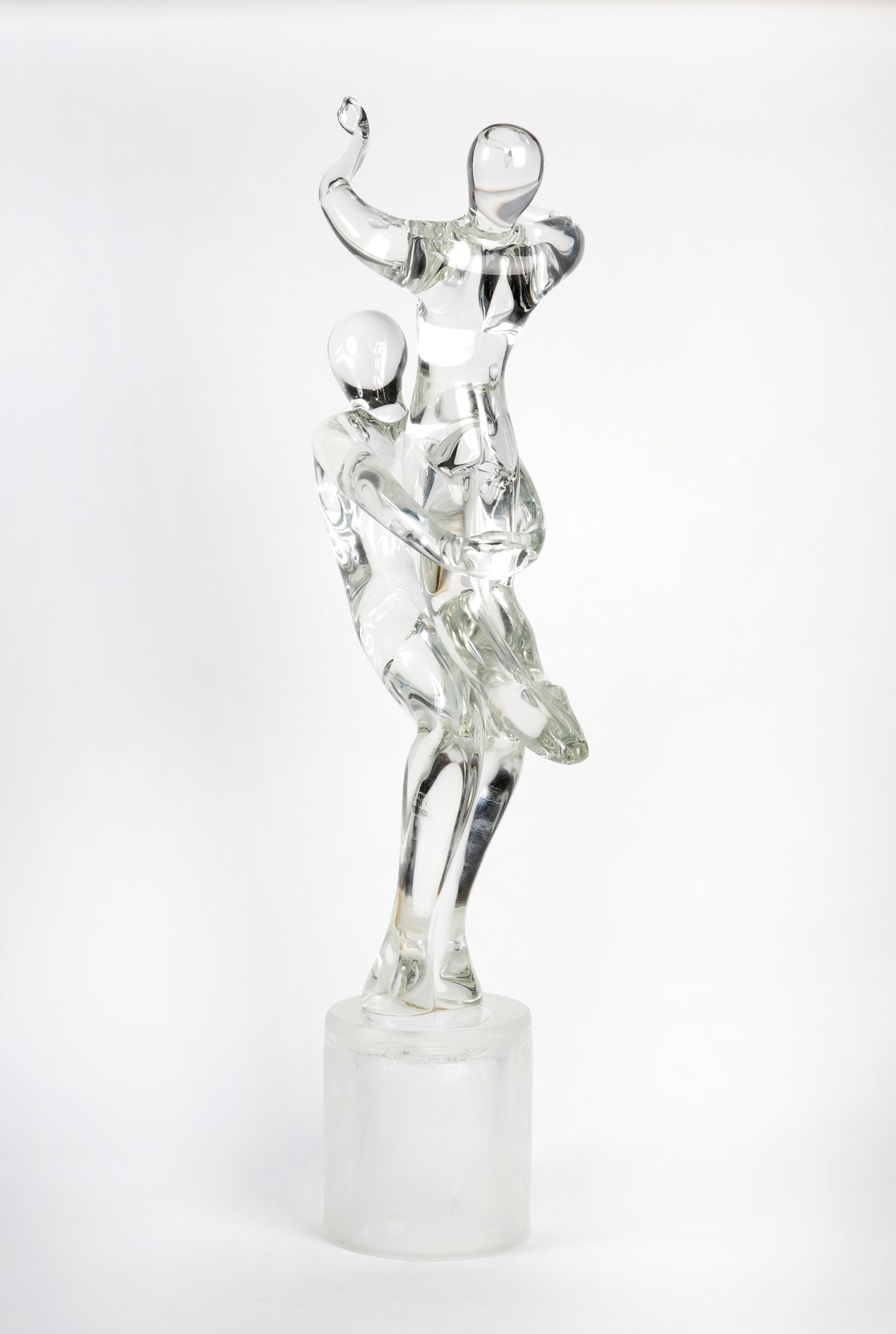 RENATO ANATRA' (1943) Scultura in vetro di Murano raffigurante due Ballerini. XX secolo, Italia. Cm 87x40. Reca etichetta Vetri Murano. Opera firmata a punta di diamante sulla base Renato Anatrà.