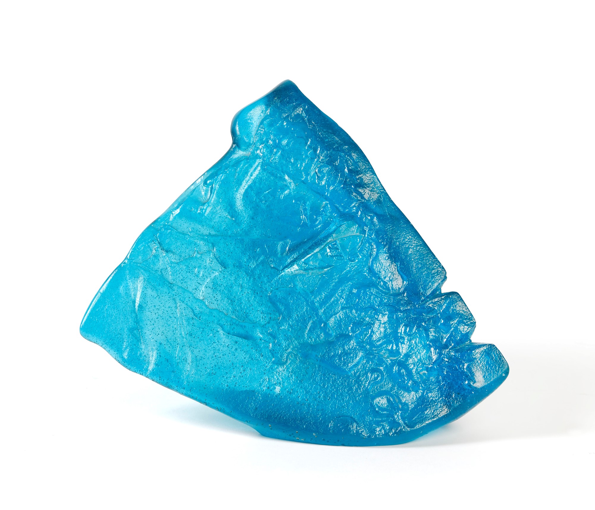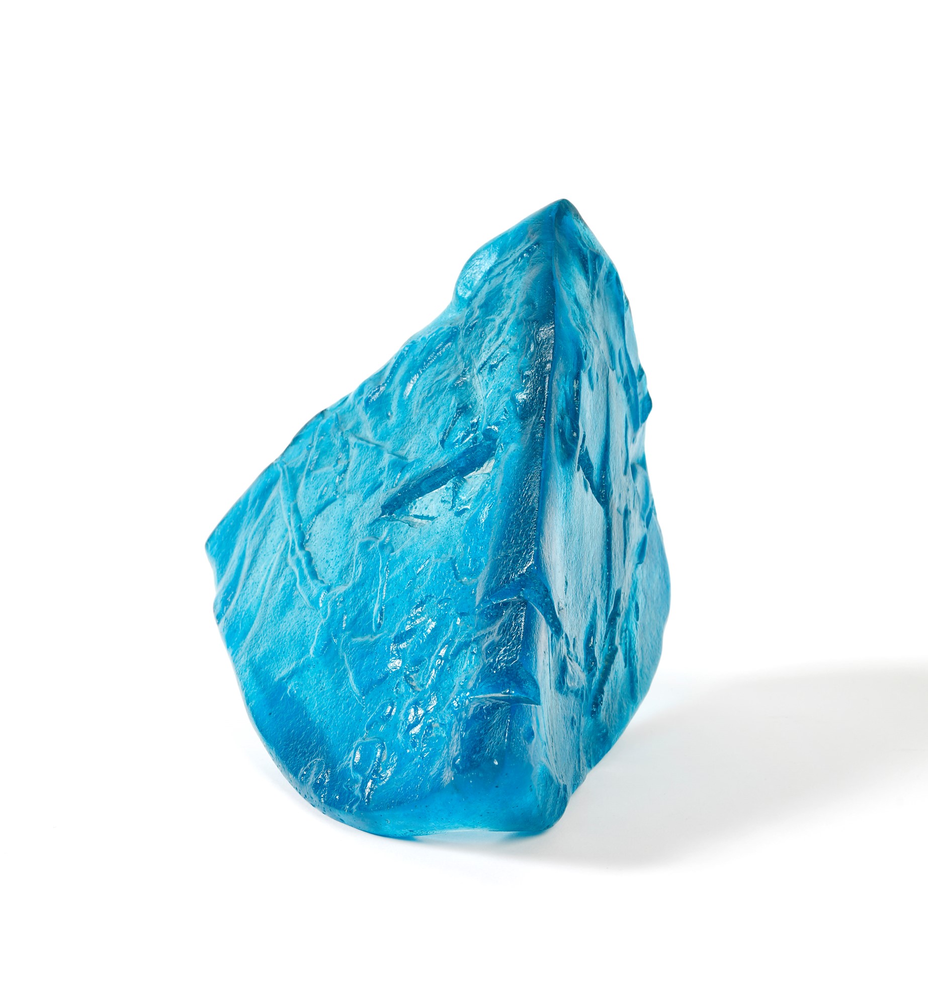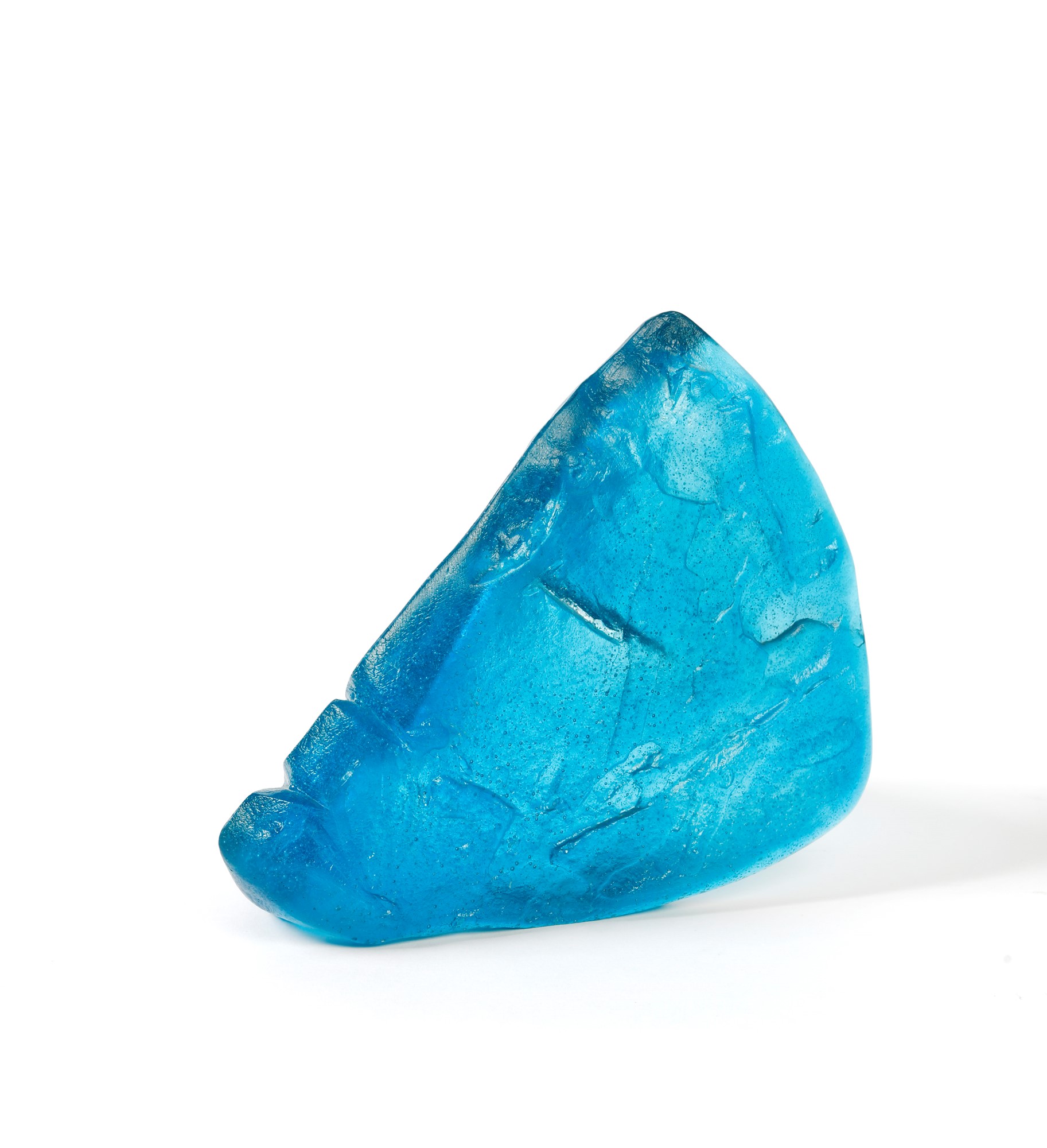 DAUM Scultura in vetro azzurro raffigurante un volto. Cm 17,5x20. Opera firmata al retro Daum. Reca numeri di tiratura al retro 68/150.
