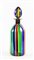 RENO SCHIAVON Bottiglia con tappo in vetro soffiato a bande multicolore. XX secolo, Italia. Cm 31x10. Sotto la base reca firma all'acido Schiavon, Murano.