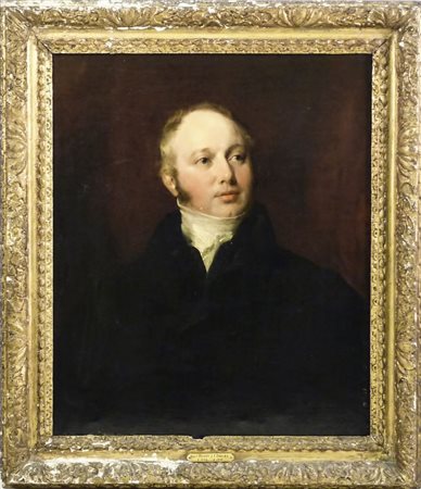 SCUOLA INGLESE DELLA PRIMA METÀ DEL XIX SECOLO Ritratto del reverendo Henry J.T. Drury olio su tela, in cornice coeva intagliata e dorata cm 75,5x63,5 Il Reverendo Henry J. T. Drury visse tra il 1770 e il 1841. Reca cartiglio sulla cornice - With label on the frame: R.d Henry J. T. Drury b. 1770-d. 1841; Al verso reca cartiglio - With label on reverse: Rev.d Henry Joseph Thomas Drury. M. A. F. R: S. Assistant - Master of Harrow School Rector of Fingest - Bucks. b. at Harrow 27 April 1778 d. at Harrow 5. March 1841 Fellow of Kings College. Cambrige. ENGLISH SCHOOL OF FIRST HALF OF 19TH CENTURY, PORTRAIT OF THE REVEREND HENRY J. T. DRURY, OIL ON CANVAS. HENRY J. T. DRURY WAS BORN IN BETWEEN 1770 AND 1841