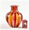 GABRIELE URBAN (Italia XX secolo) Vaso in vetro a strisce rosse, gialle e ocra. XX secolo, Italia. Cm 20,5x17.