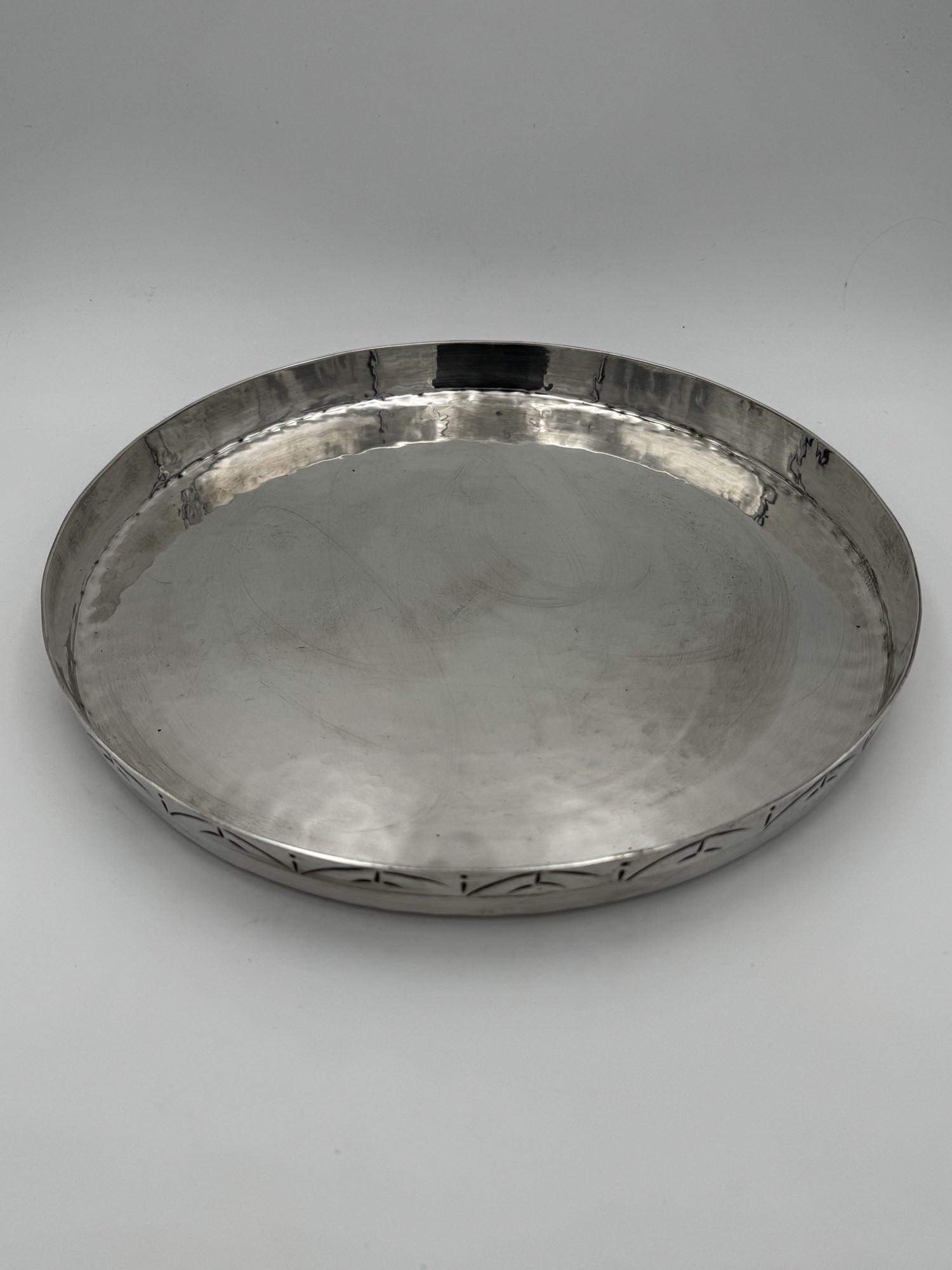 BRANDIMARTE, Firenze. Vassoio in Argento 925. XX secolo. Cm diametro 33. Reca punzoni: 925, BR, Brandimarte, Sterling. Peso: 933 gr.