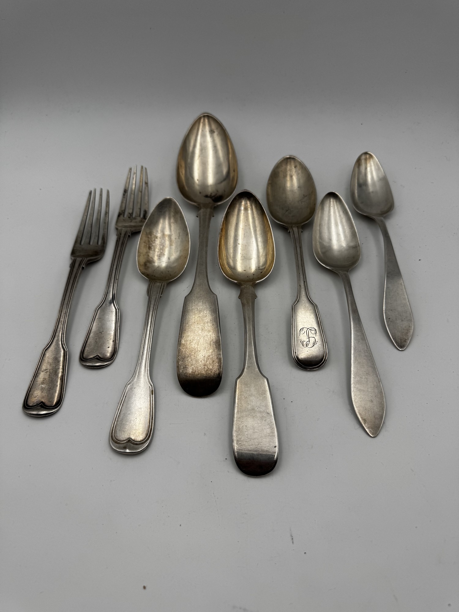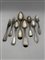 Servizio composto da cucchiai e posate in argento 800. XX secolo, Italia. Recano punzone 800. Peso: 628 gr.