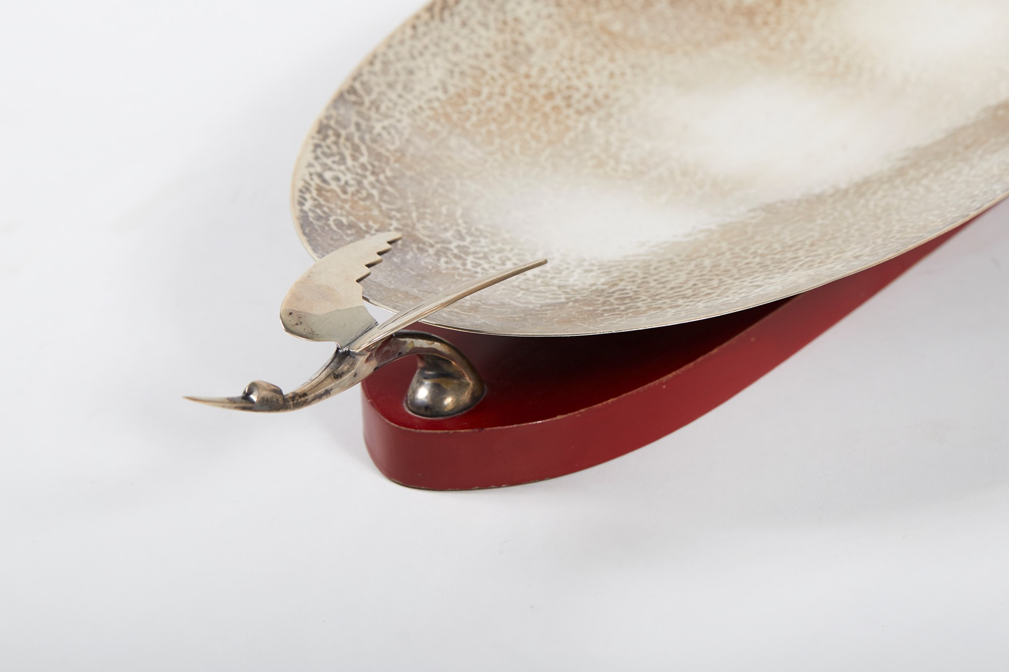 Centrotavola in argento 800 con manici a forma di Airone Anni ‘30 Cm 7x60x22