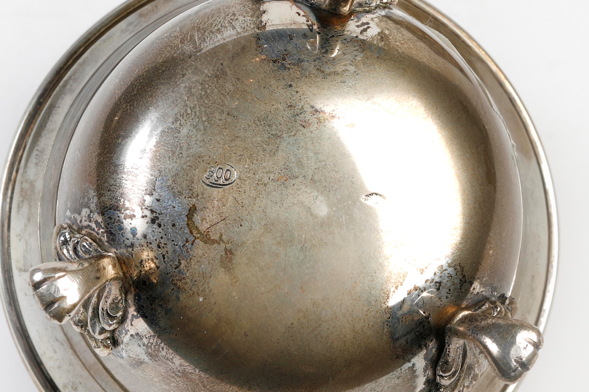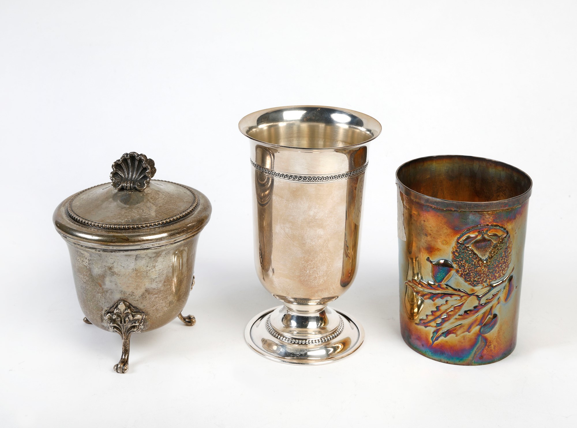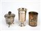 Lotto composto da tre oggetti in argento 800. Rispettivamente cm h 10; 12; 9,5. Recano punzoni 800. Peso totale: 400 gr.