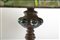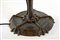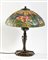 Lampada modello Tiffany con base in stile liberty in ottone e paralume a vetro cloisonné. XX secolo. Cm 47x40.