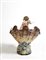 Centrotavola in ceramica policroma a foggia di conchiglia e putto Cm 49x45x40