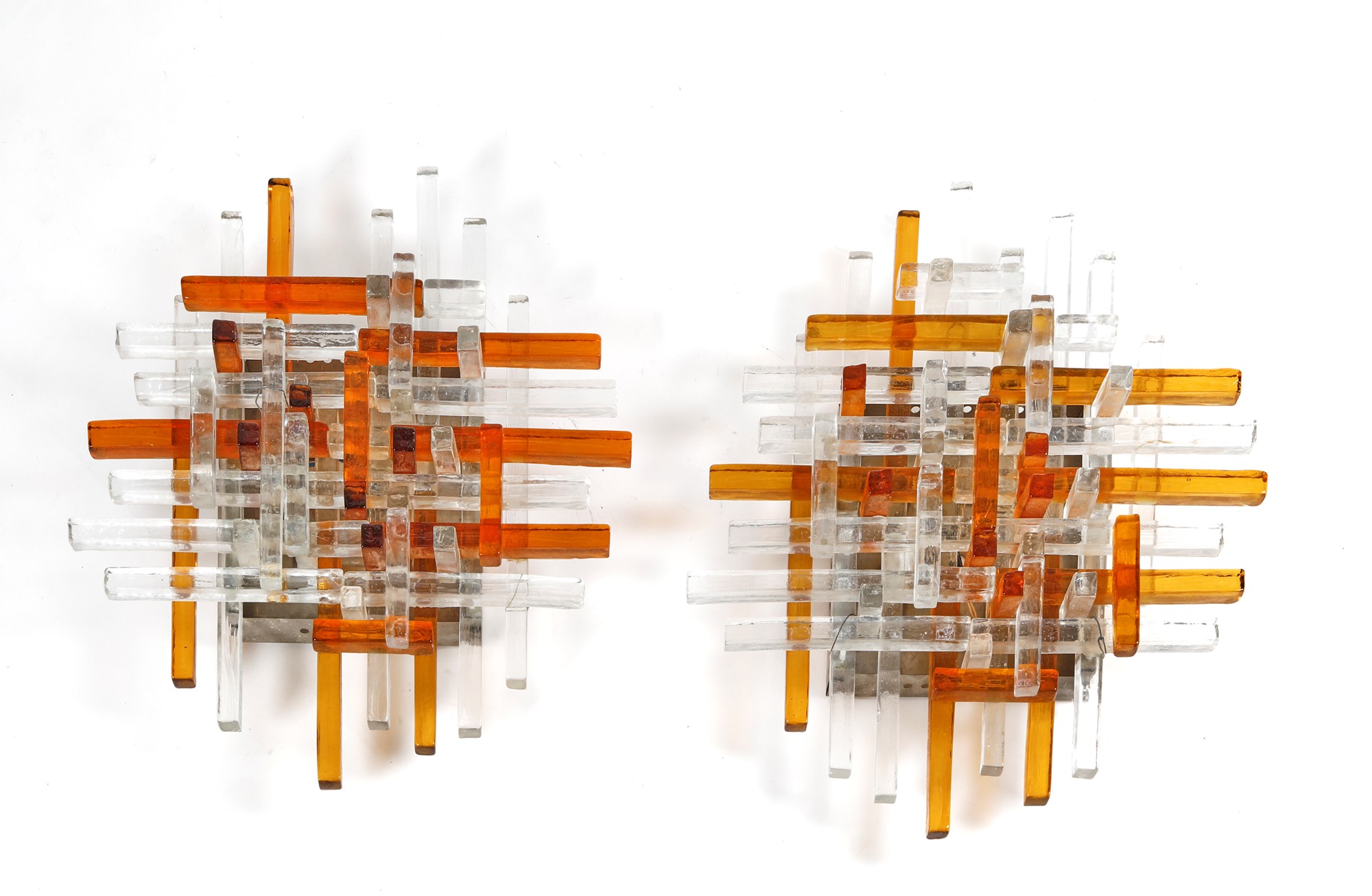 Albano Poli (Verona, 02/08/1935 - ) Coppia di applique modello “Tauru” Anni ‘70 Cm 54x52x10