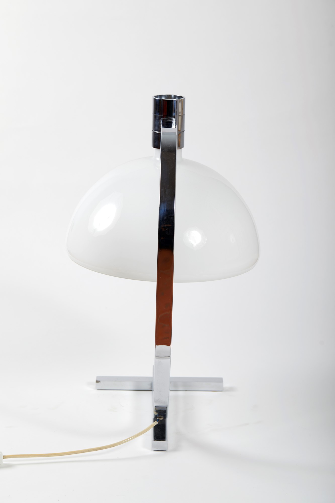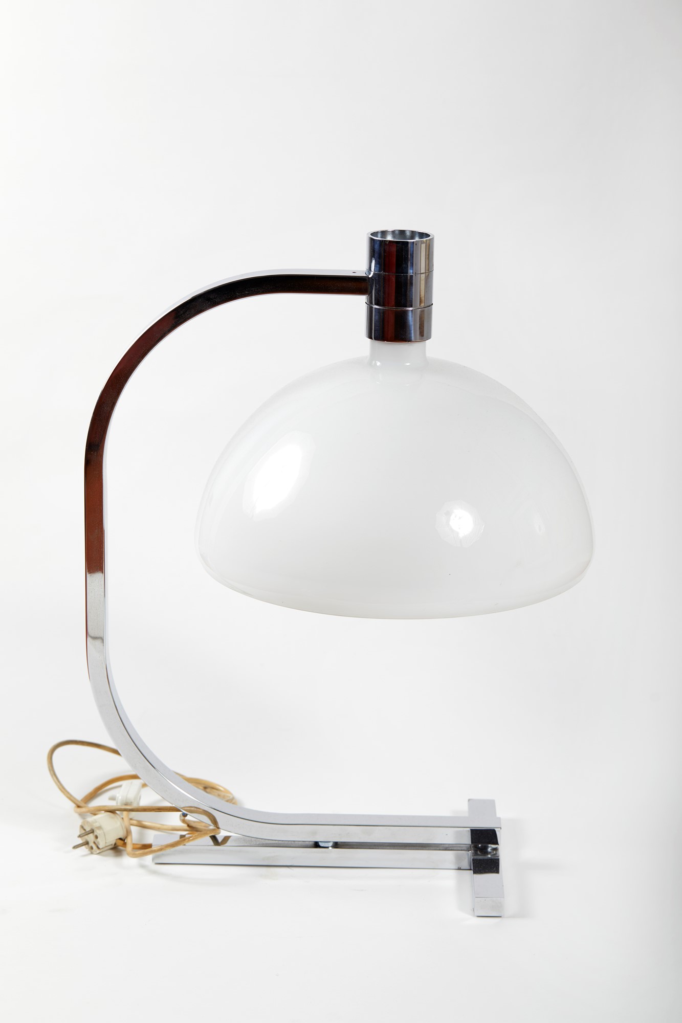 FRANCO ALBINI, FRANCA HELG, ANTONIO PIVA Lampada da tavolo modello AM / AS in acciaio e vetro opalino. Prod. Sirrah, Italia, 1969. Cm 64x49x38,5.