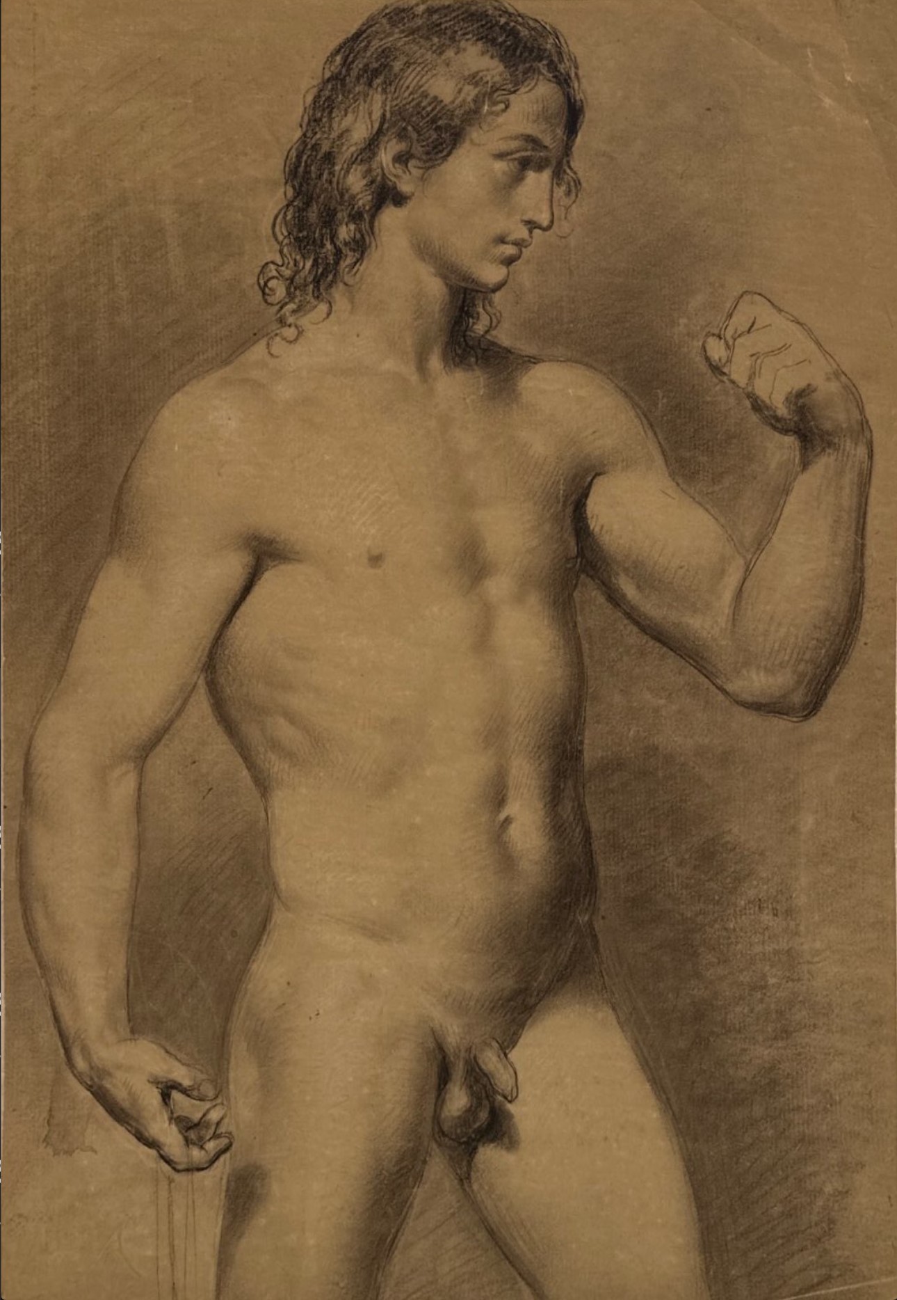 Maestro del XIX secolo, "Studio accademico". Carboncino su carta. Cm 35,5x26,5.