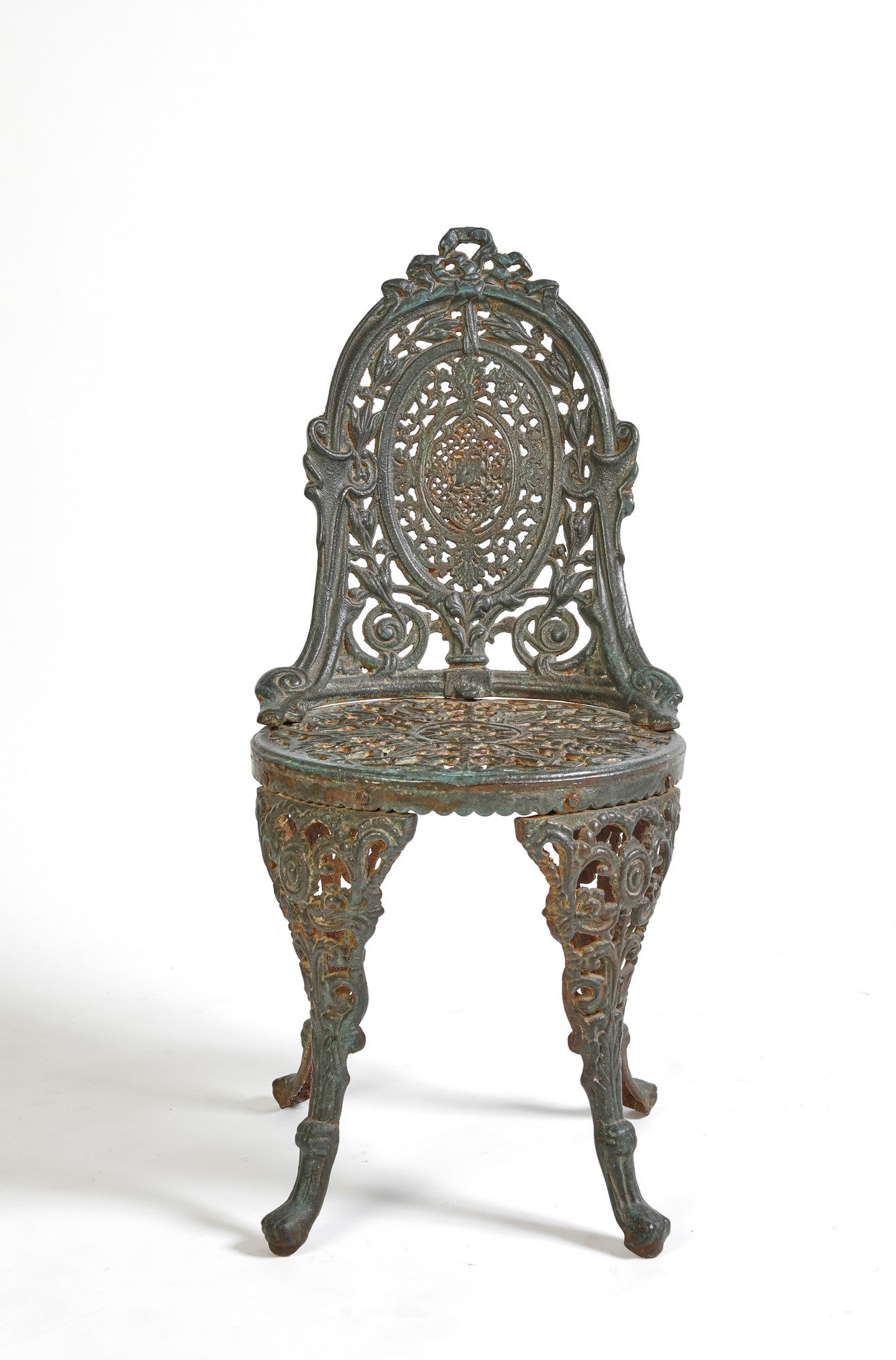 Sedia da giardino in ghisa. XX secolo. Cm h 92.