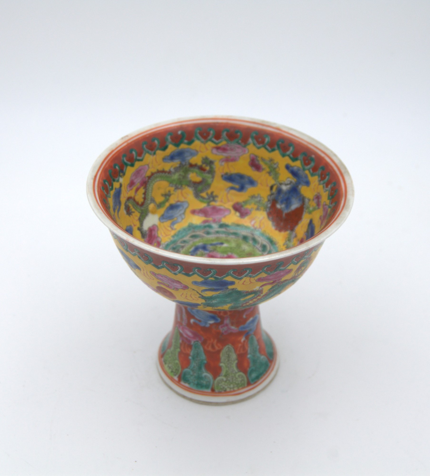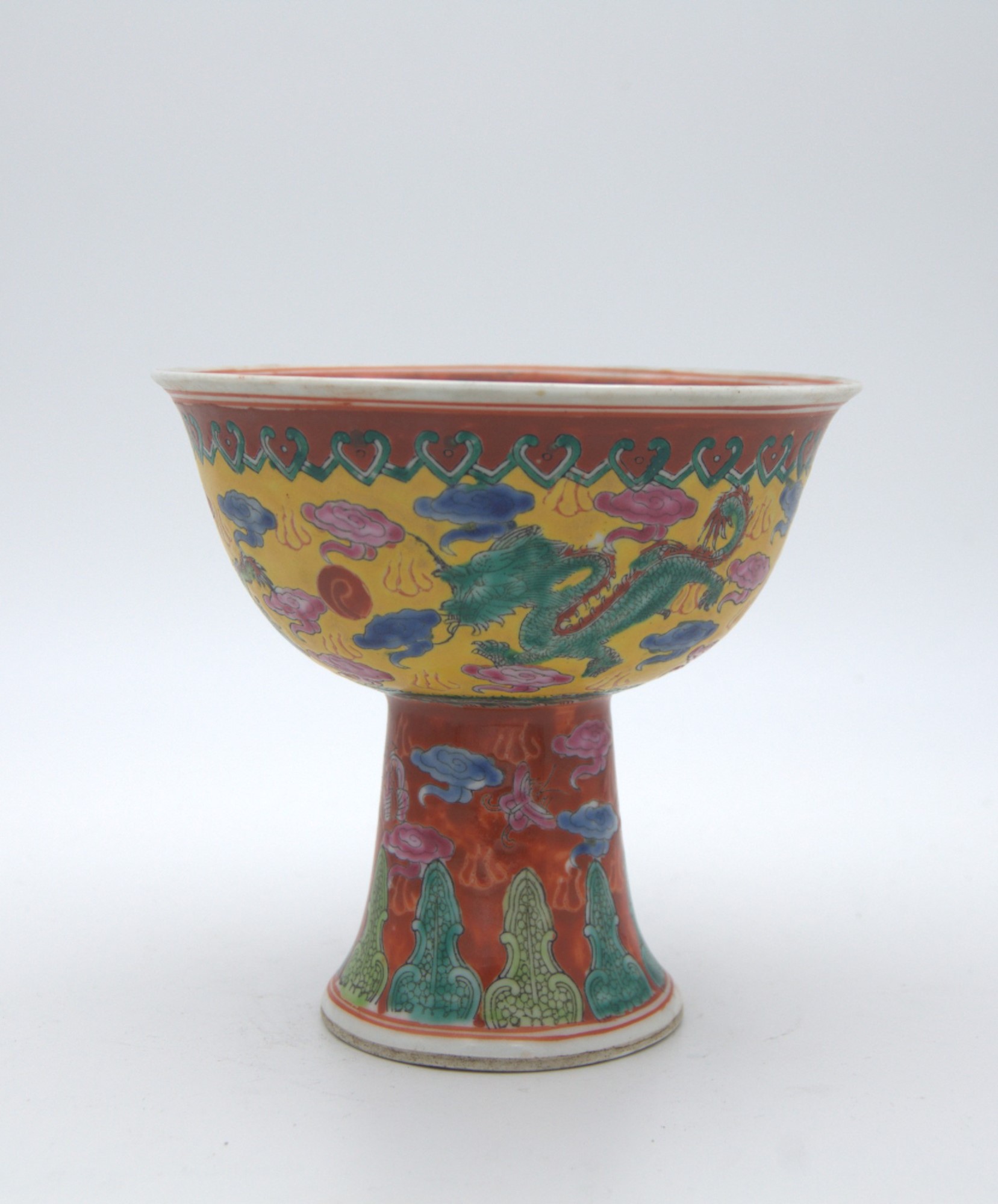 Alzatina cinese in ceramica smaltata. Fine del XIX - inizi del XX secolo. Cina. Cm 13x14.