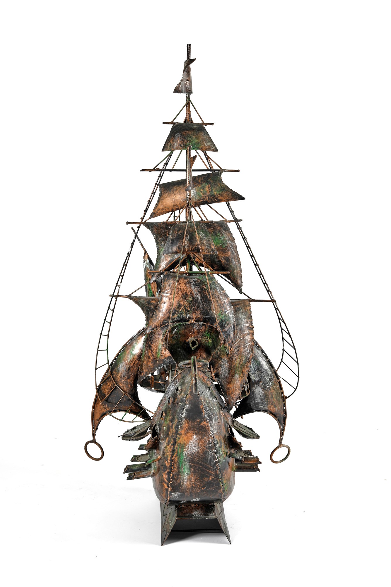 Galeone in ferro battuto a mano. Metà del XX secolo. Cm 115x95x54.