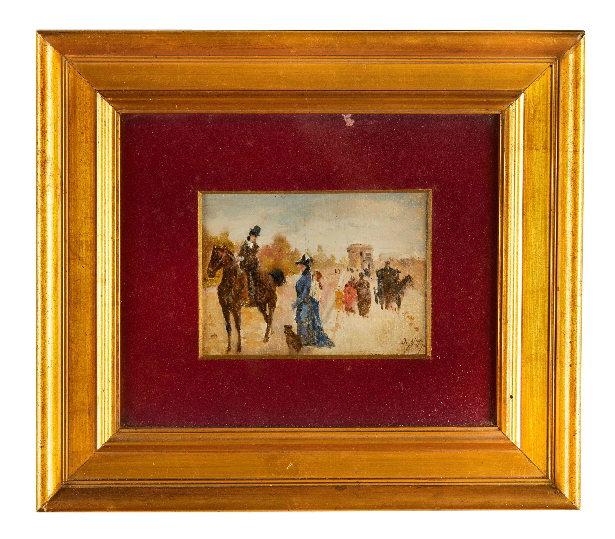 GIUSEPPE DE NITTIS (Barletta 1846 - Saint-Germain-en-Laye 1884) "Senza titolo". Olio su tela. Cm 12x17. Opera firmata in basso a destra De Nittis.