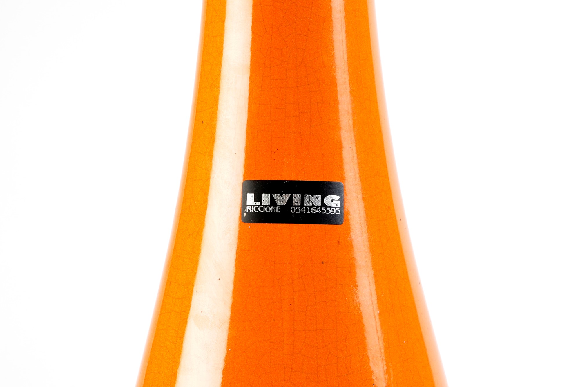 LIVING, Riccione. Grande vaso in ceramica smaltata arancione. XX secolo, Italia. Cm 146,5x27.
