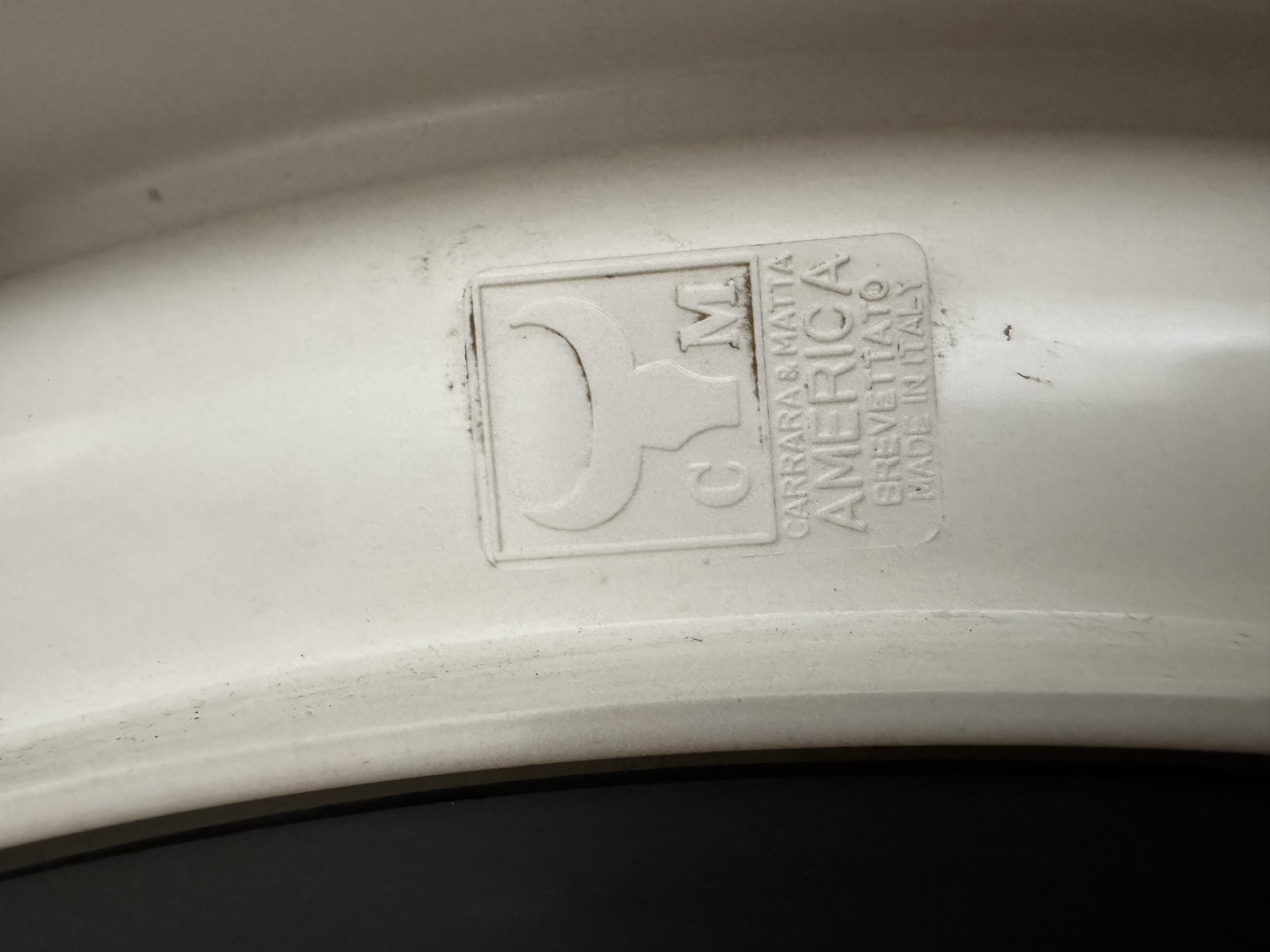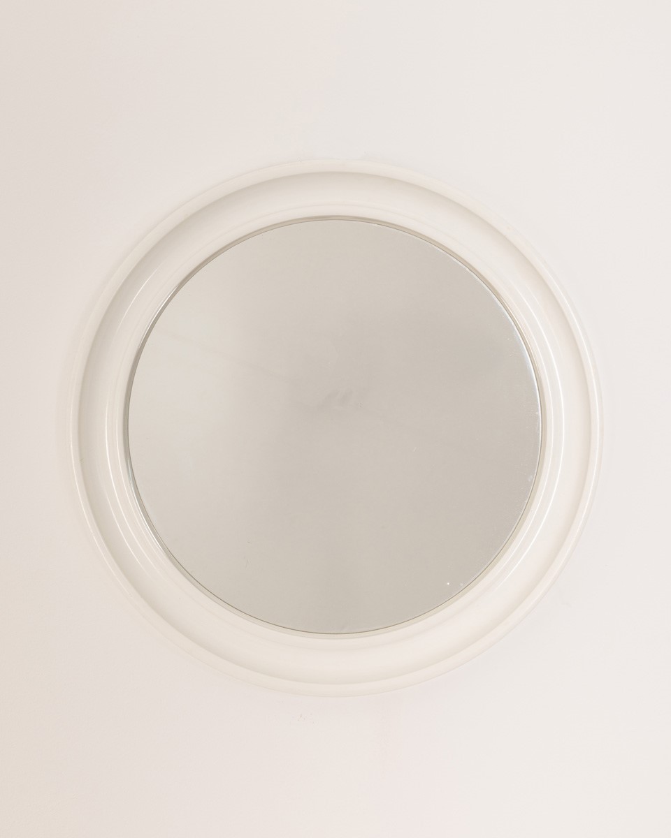 CARRARA & MATTA Specchio da parete in materiale plastico bianco. 1970. Prod. Carrara & Matta, Italia. Cm 58,5x5. Al retro reca marchio Carrara & Matta.