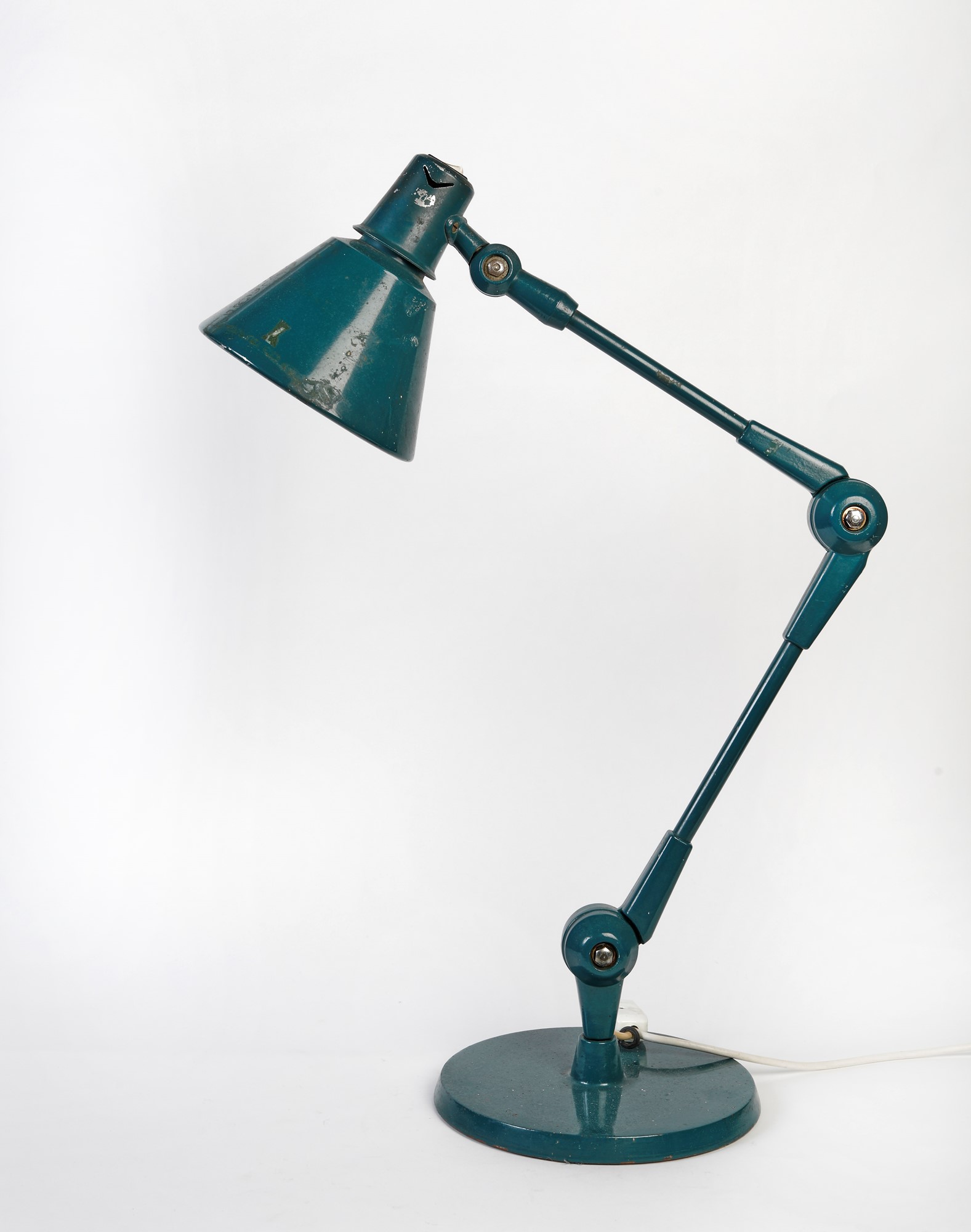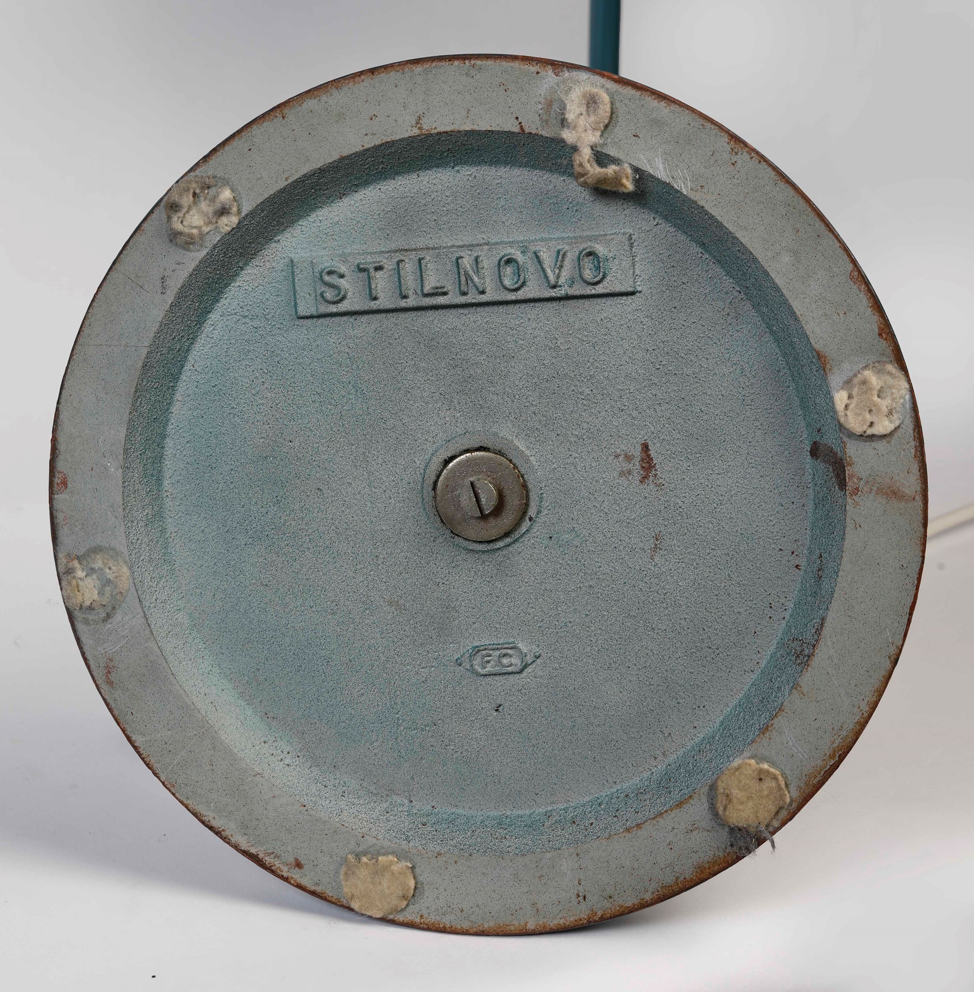 STILNOVO Lampada da lavoro in metallo verde petrolio. 1950 - 1960. Prod. Stilnovo, Italia. Elettrificata. Cm 100x22. Sotto la base reca marchio Stilnovo. (difetti)