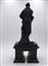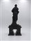 Statua in legno raffigurante Allegoria della Fama. XVII secolo. Venezia. Ebano scolpito su base sagomata e decorata in oro. Cm 38x18x12.