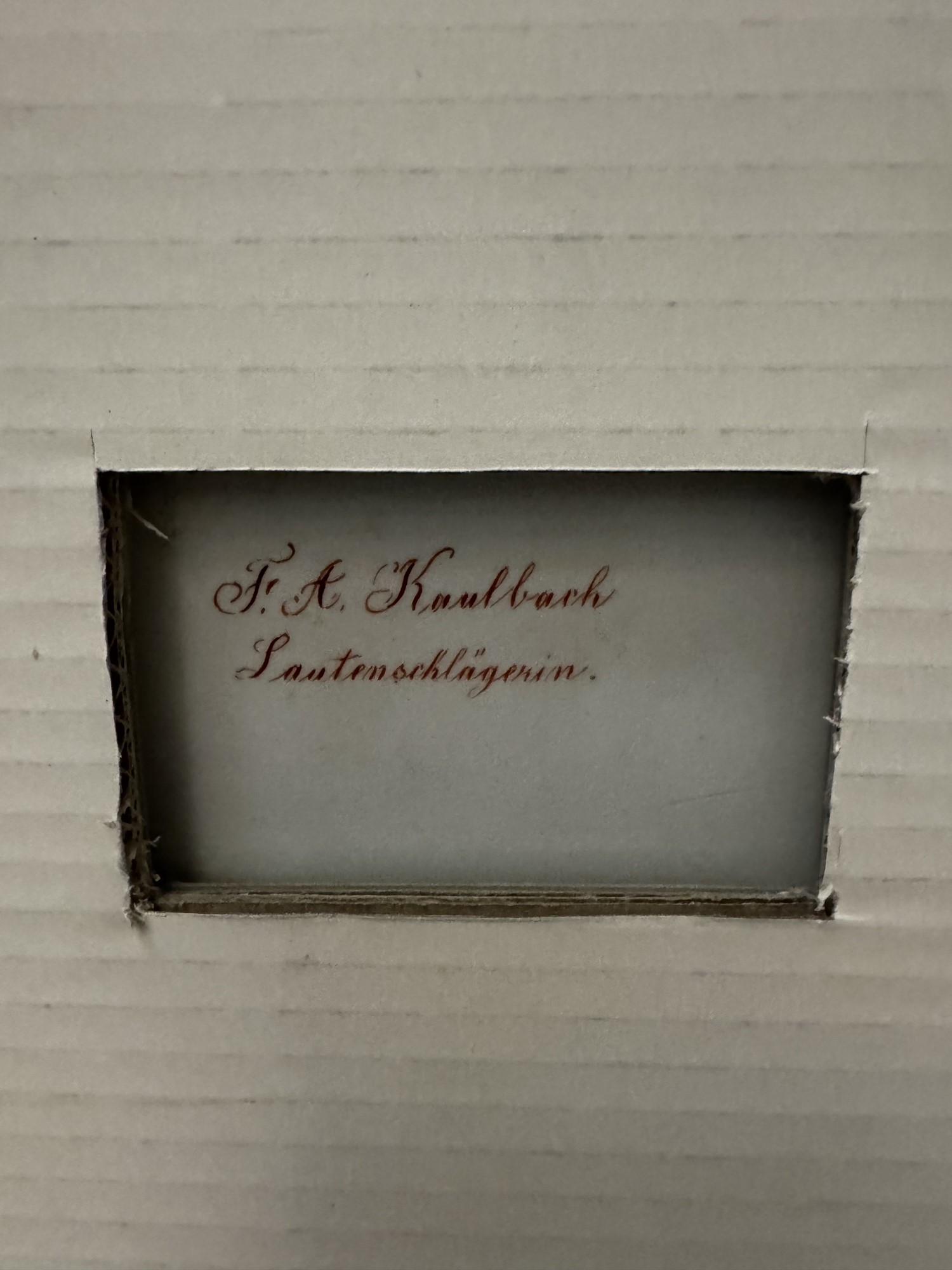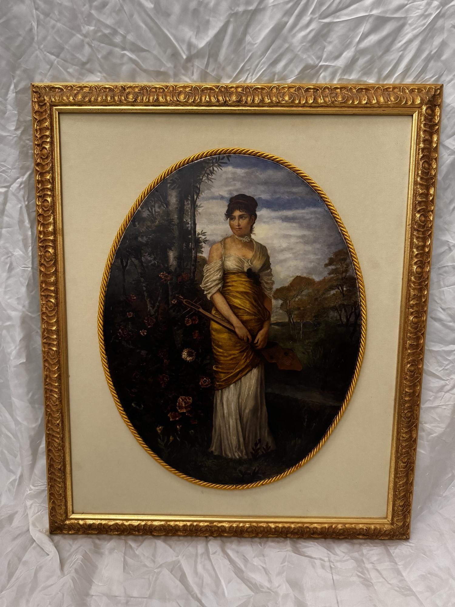 FRIEDRICH AUGUST VON KAULBACH (Monaco di Baviera 1850 – Ohlstadt 1920) "Suonatrice di liuto". Smalto su ceramica. Cm 50x39. Al retro opera firmata e intitolata.