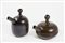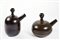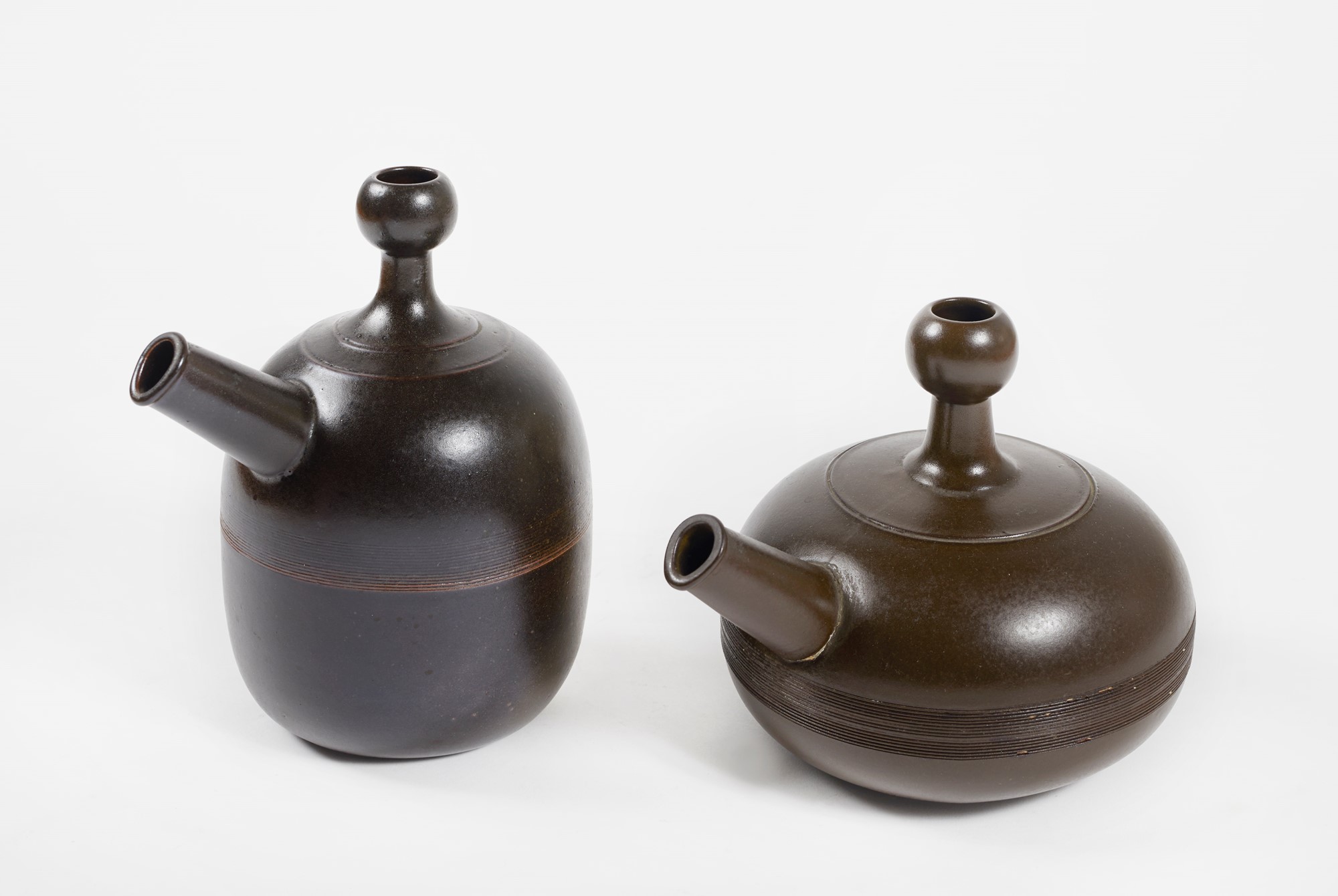 FRANCO E AMBROGIO POZZI Coppia di vasi in ceramica color cioccolata. Rispettivamente h cm 24; 19.