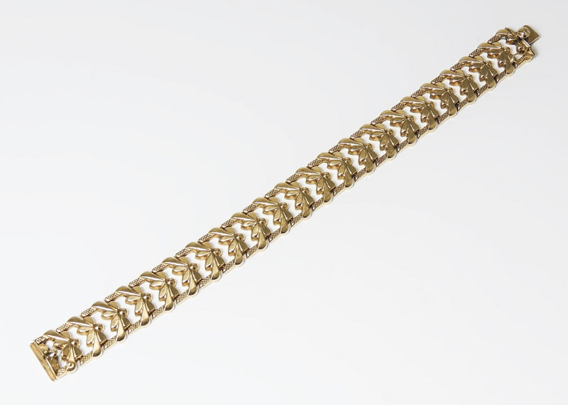 BRACCIALE IN ORO GIALLO Anni Cinquanta traforato con motivo di piccoli fiori...