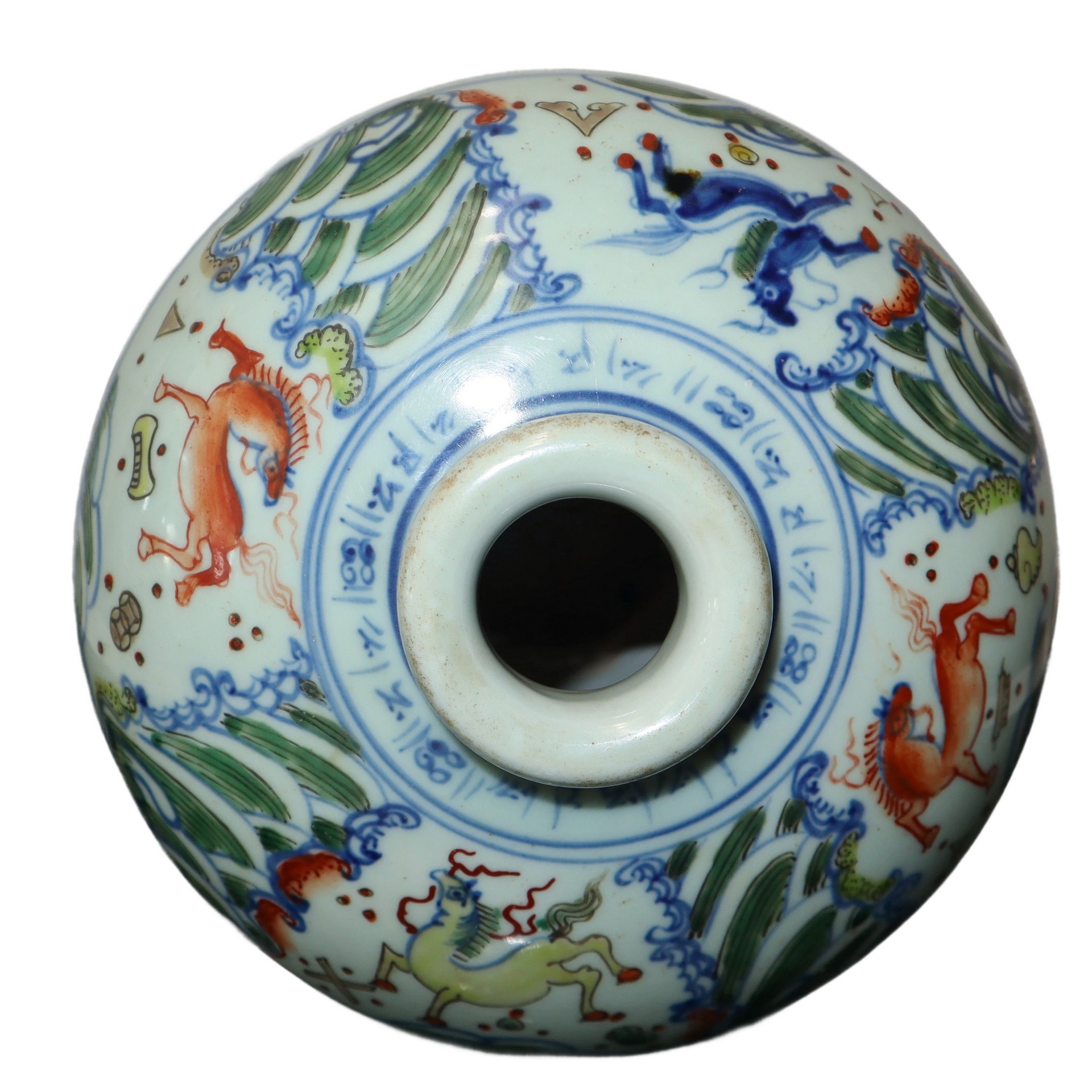 Lotto 14 | Vaso cinese Doucai Meiping dipinta con motivi tradizionali di dragoni, Ming , Dinastia