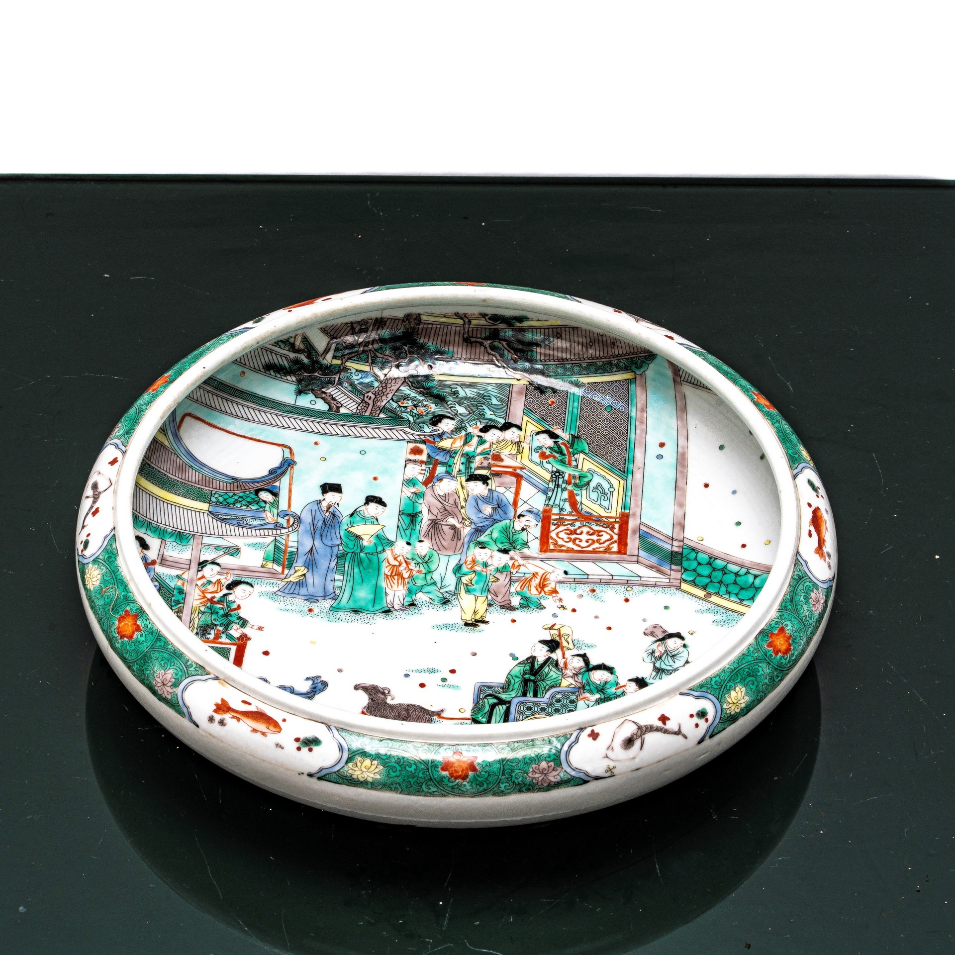 Ciotola in porcellana cinese decorata con scene di vita quotidiana, Repubblica , periodo