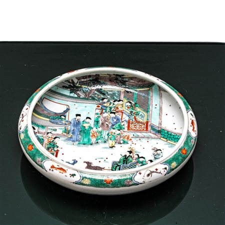 Ciotola in porcellana cinese decorata con scene di vita quotidiana, Repubblica , periodo h cm 8X27 Iscrizione sul fondo Iscrizione sul fondo