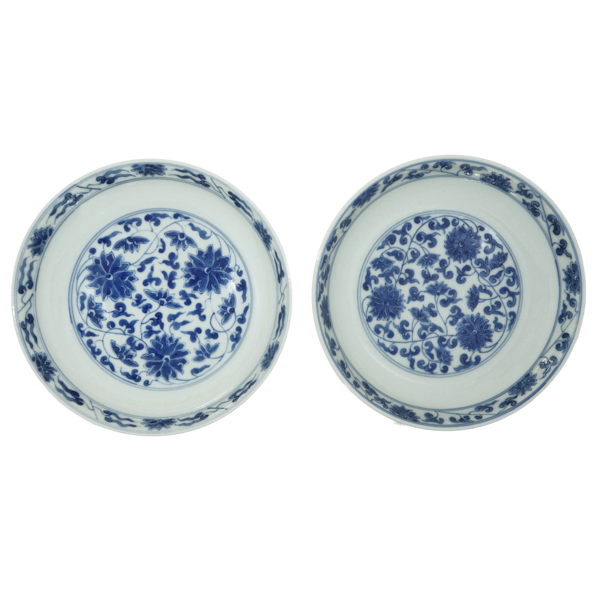 Coppia di piatti cinesi nei toni bianco e blu, Guangxu , Dinastia 19° secolo