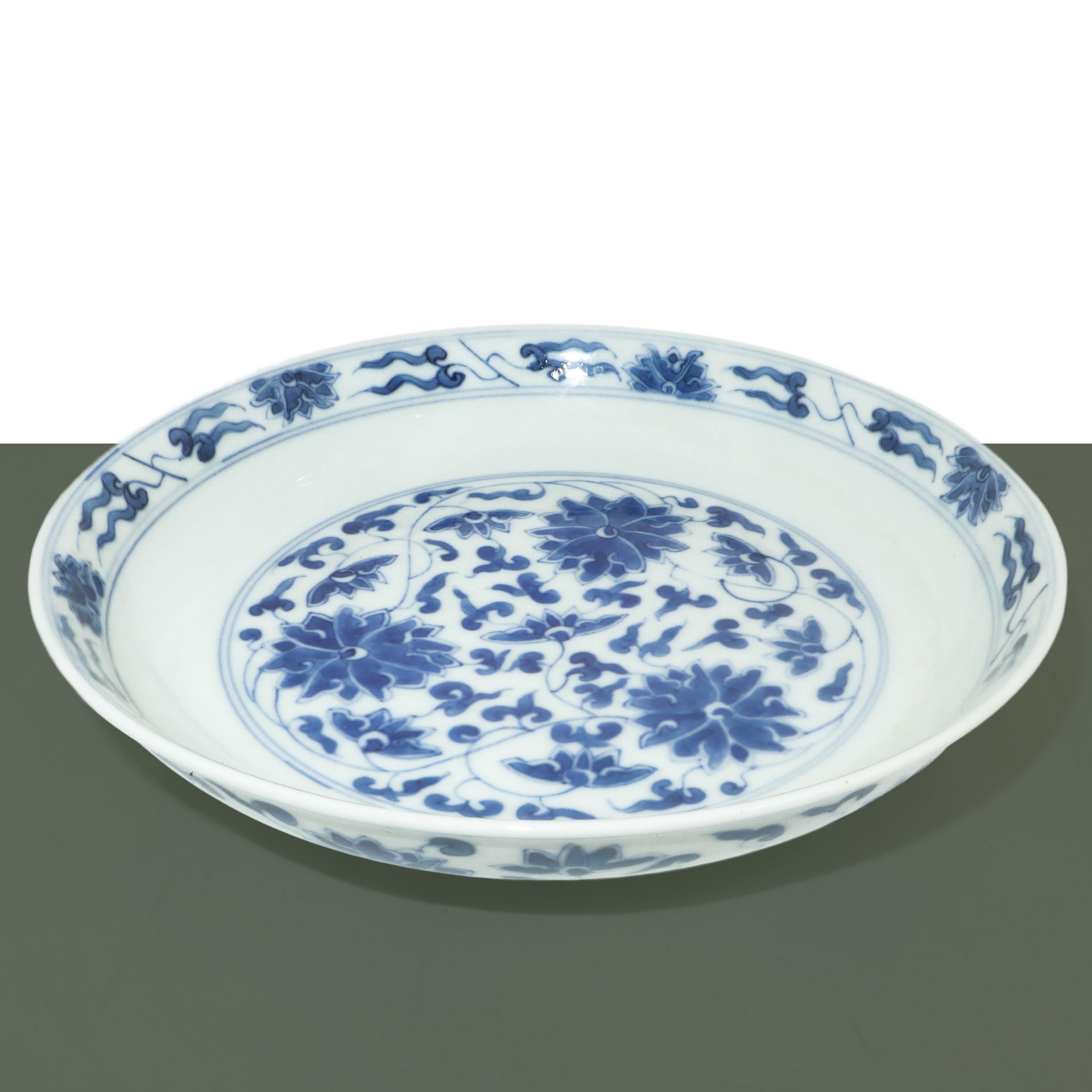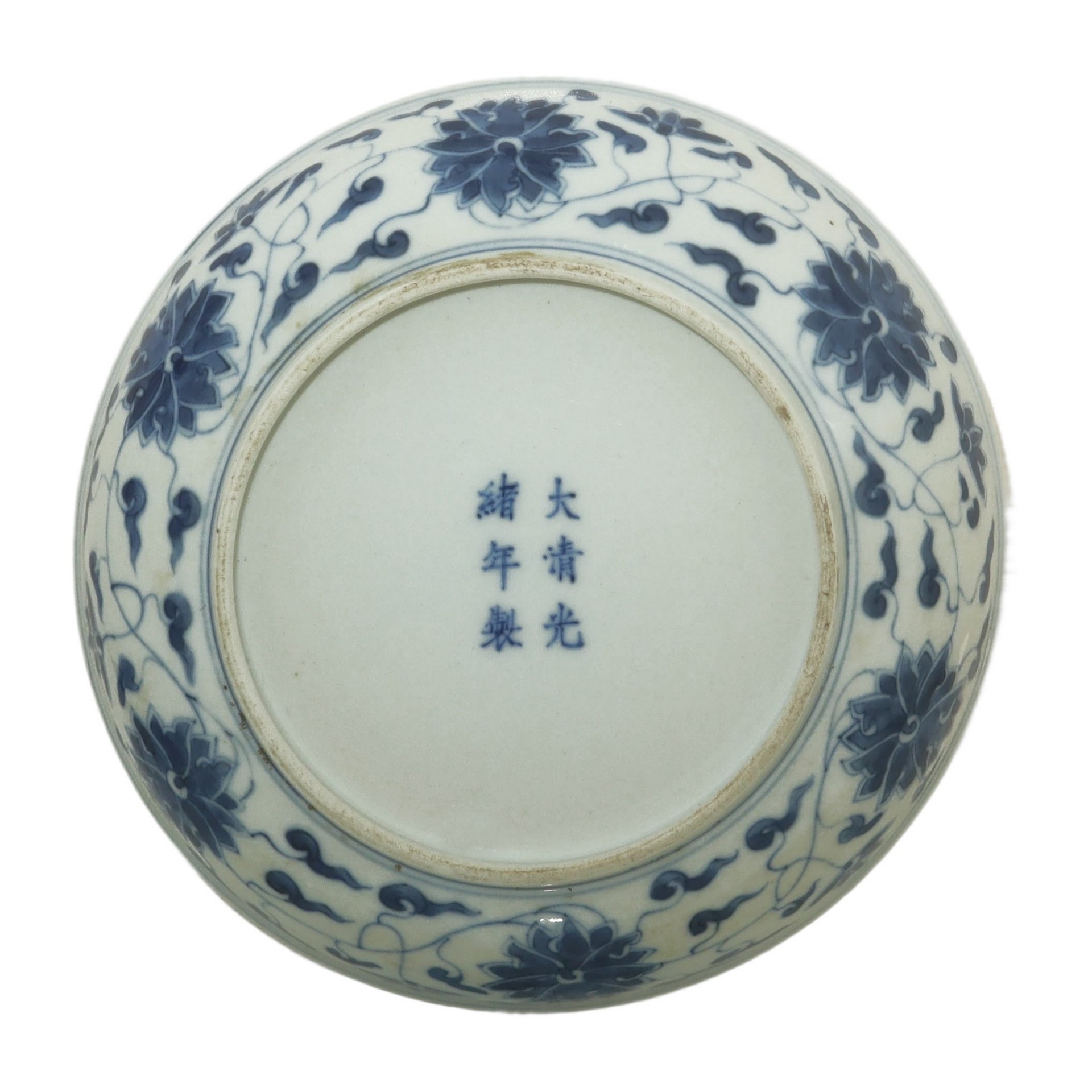 Coppia di piatti cinesi nei toni bianco e blu, Guangxu , Dinastia 19° secolo 18,5 diametro, x 3,5 h Marchio sul fondoMarchio sul fondo