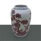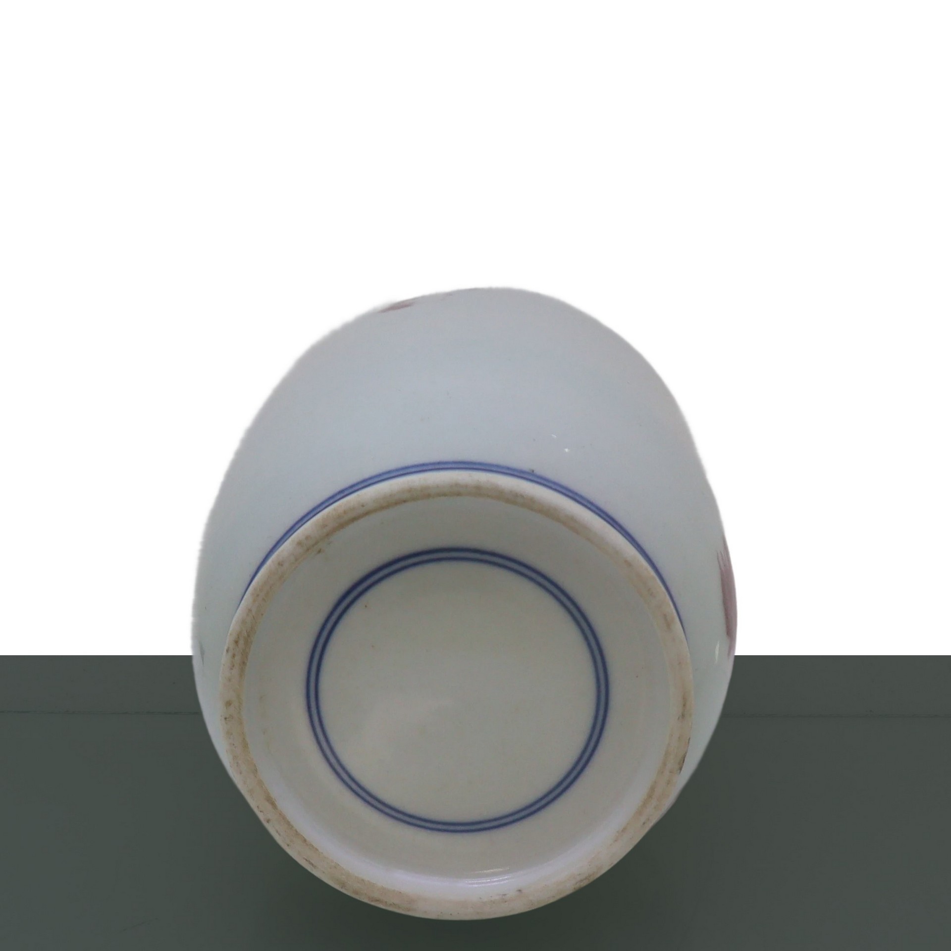 Vaso in porcellana smaltata nei toni bianco rosso e perfilo blu
