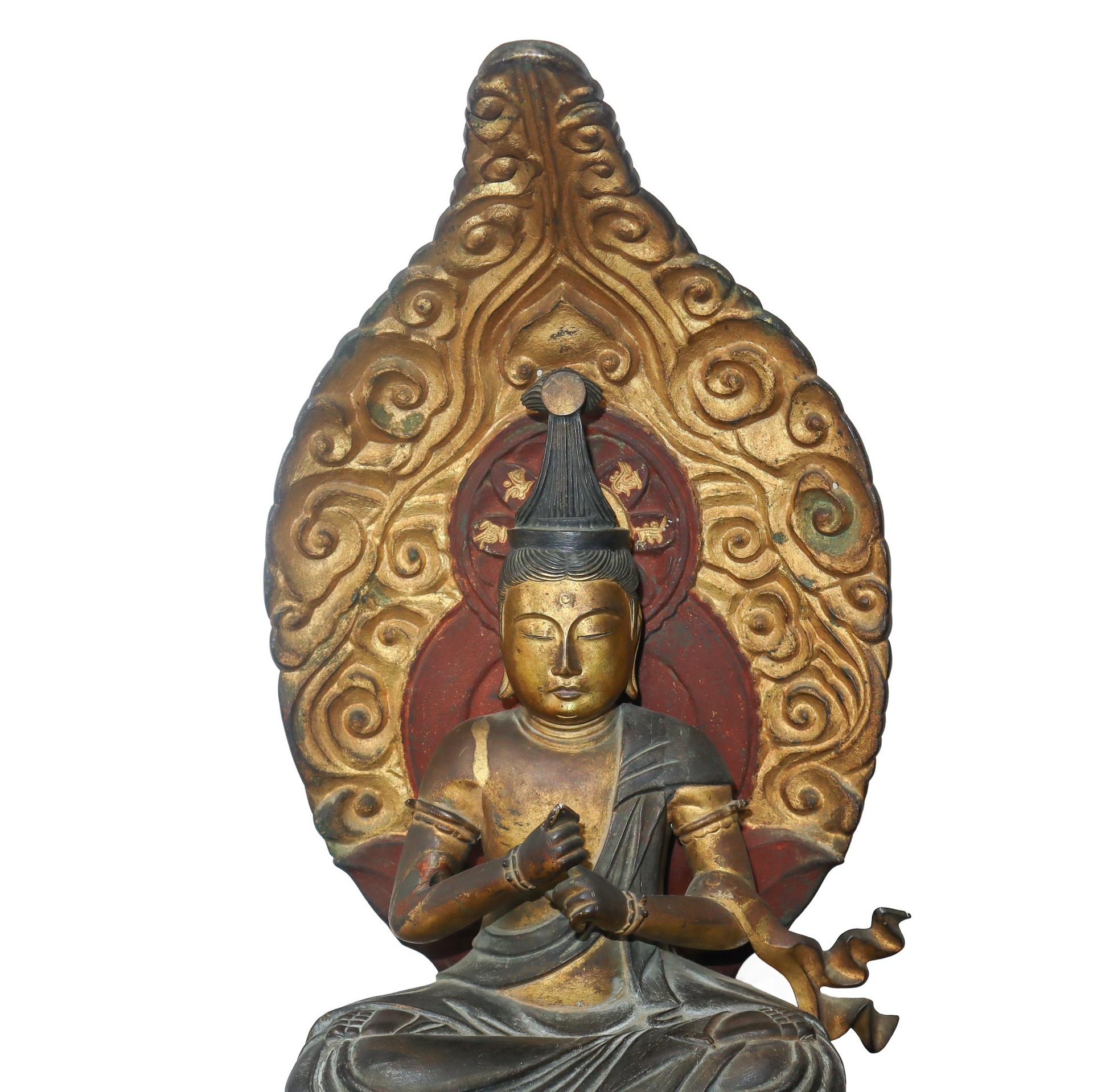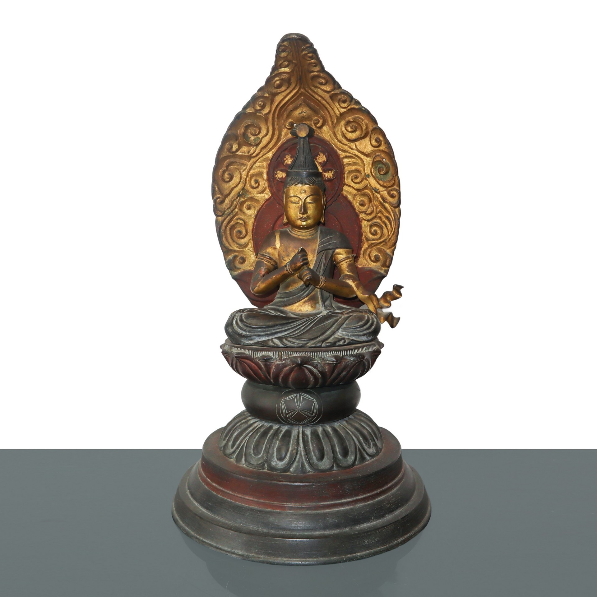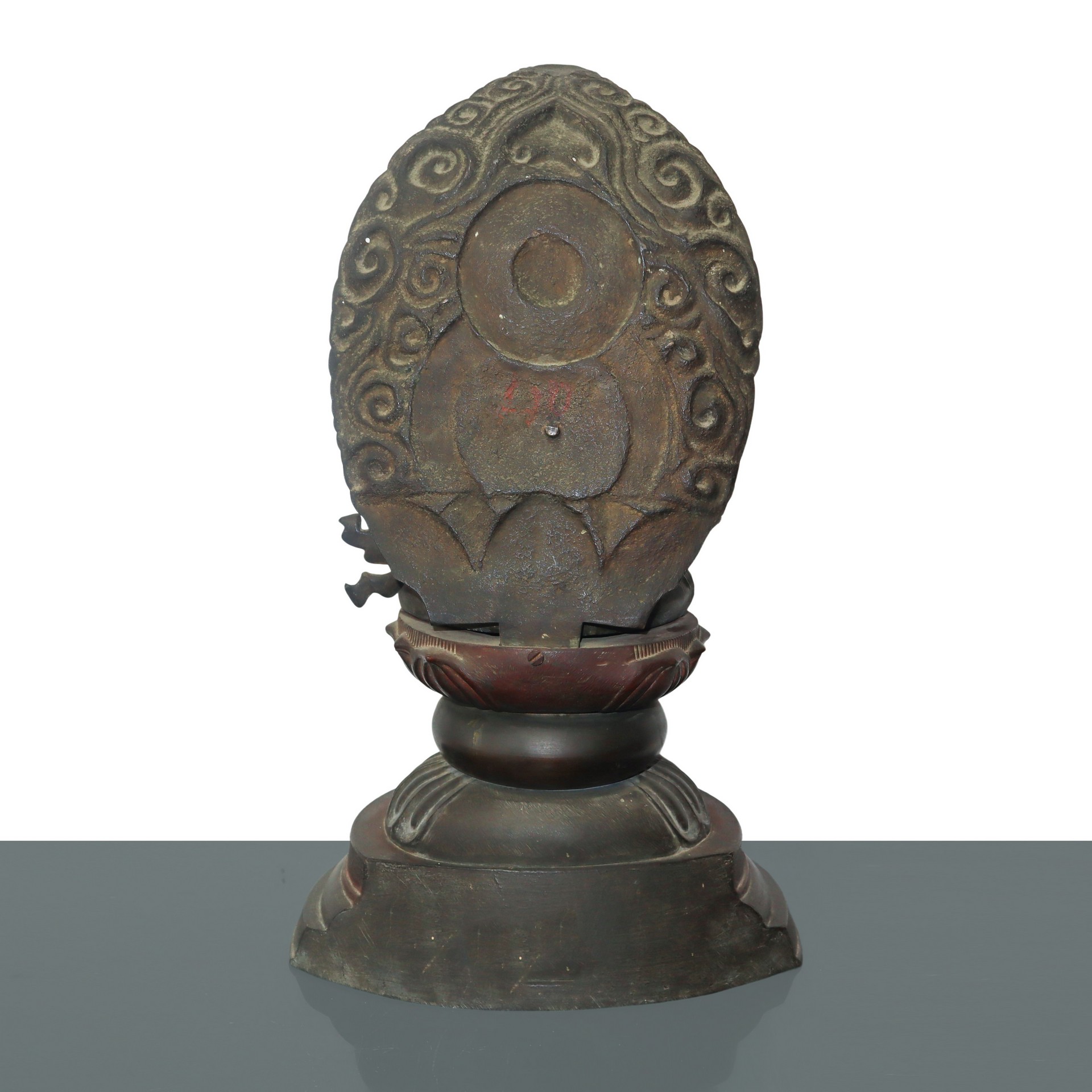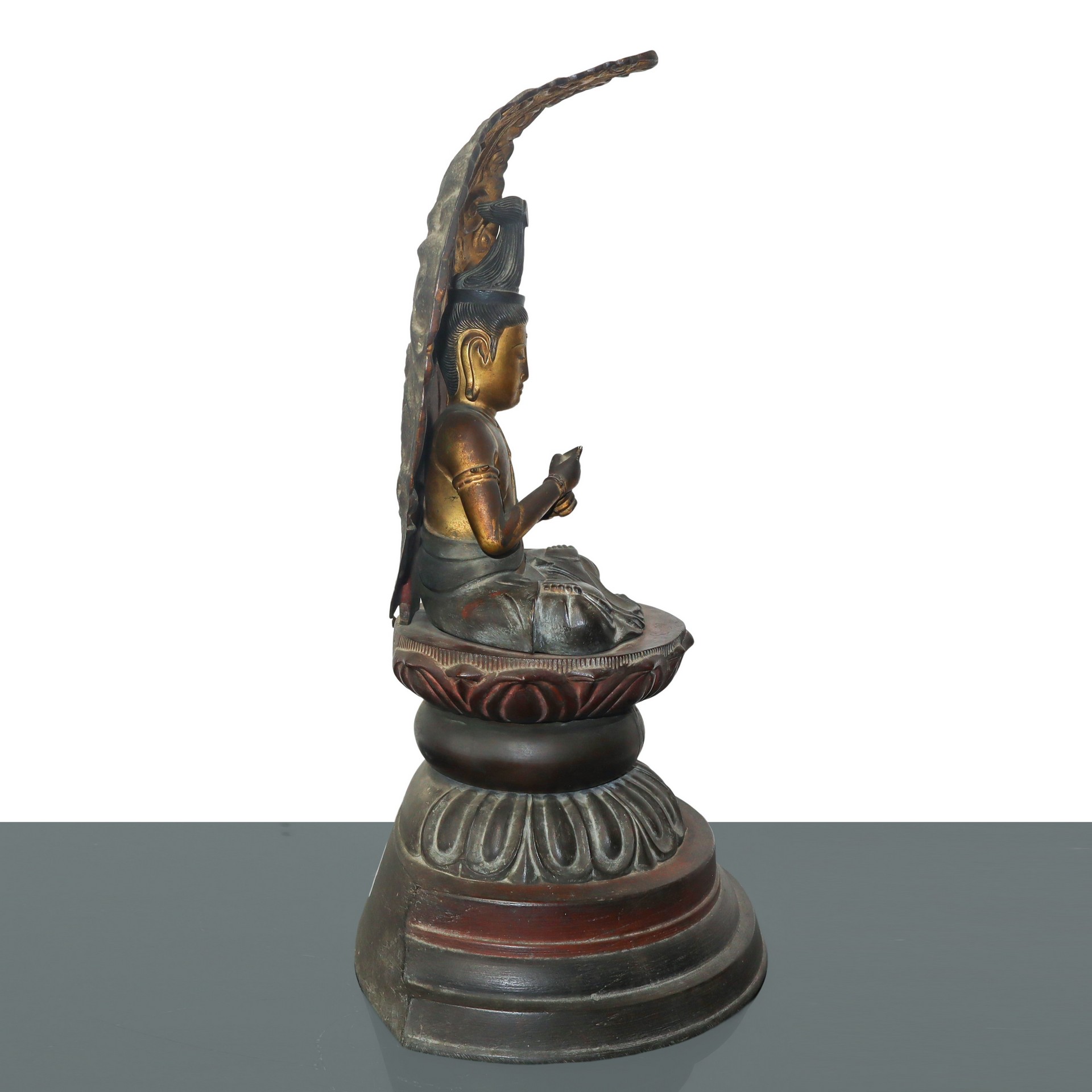 Buddha in bronzo brunito con parti dorate h cm 53 base diametro cm 30