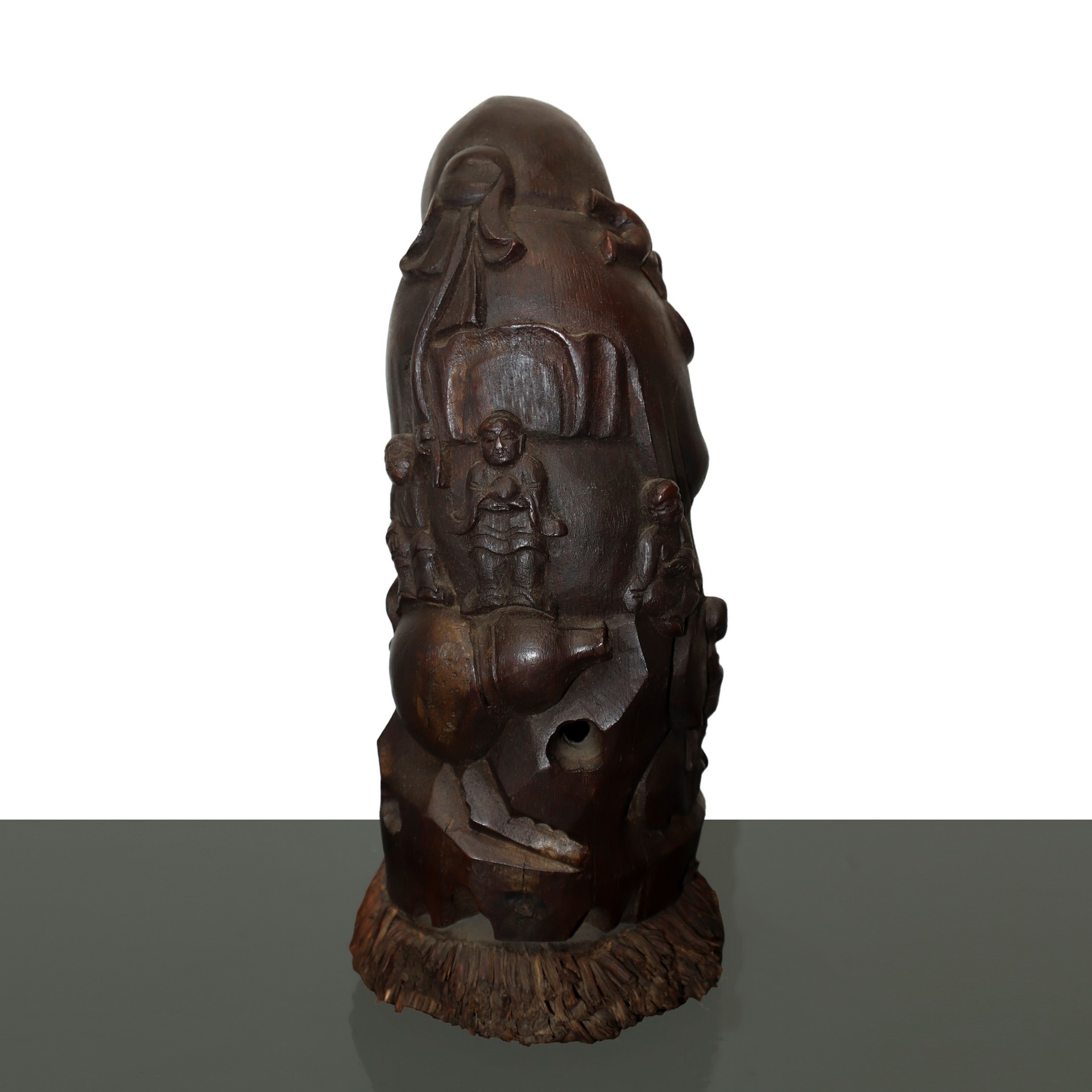Scultura di un vecchio saggio scolpito in legno di radice di bamboo H cm 36x16 Scultura di un vecchio saggio realizzata in legno di radice di bamboo. La scultura presenta dei fori ricavati nella parta inferiore. Sono presenti delle fessurazioni del legno e la scultura è leggermente sollevata dalla base.Scultura di un vecchio saggio realizzata in legno di radice di bamboo. La scultura presenta dei fori ricavati nella parta inferiore. Sono presenti delle fessurazioni del legno e la scultura è leggermente sollevata dalla base.