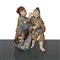Coppia di figurine giapponesi con dettagli smaltati in blu e oro H cm 24x28