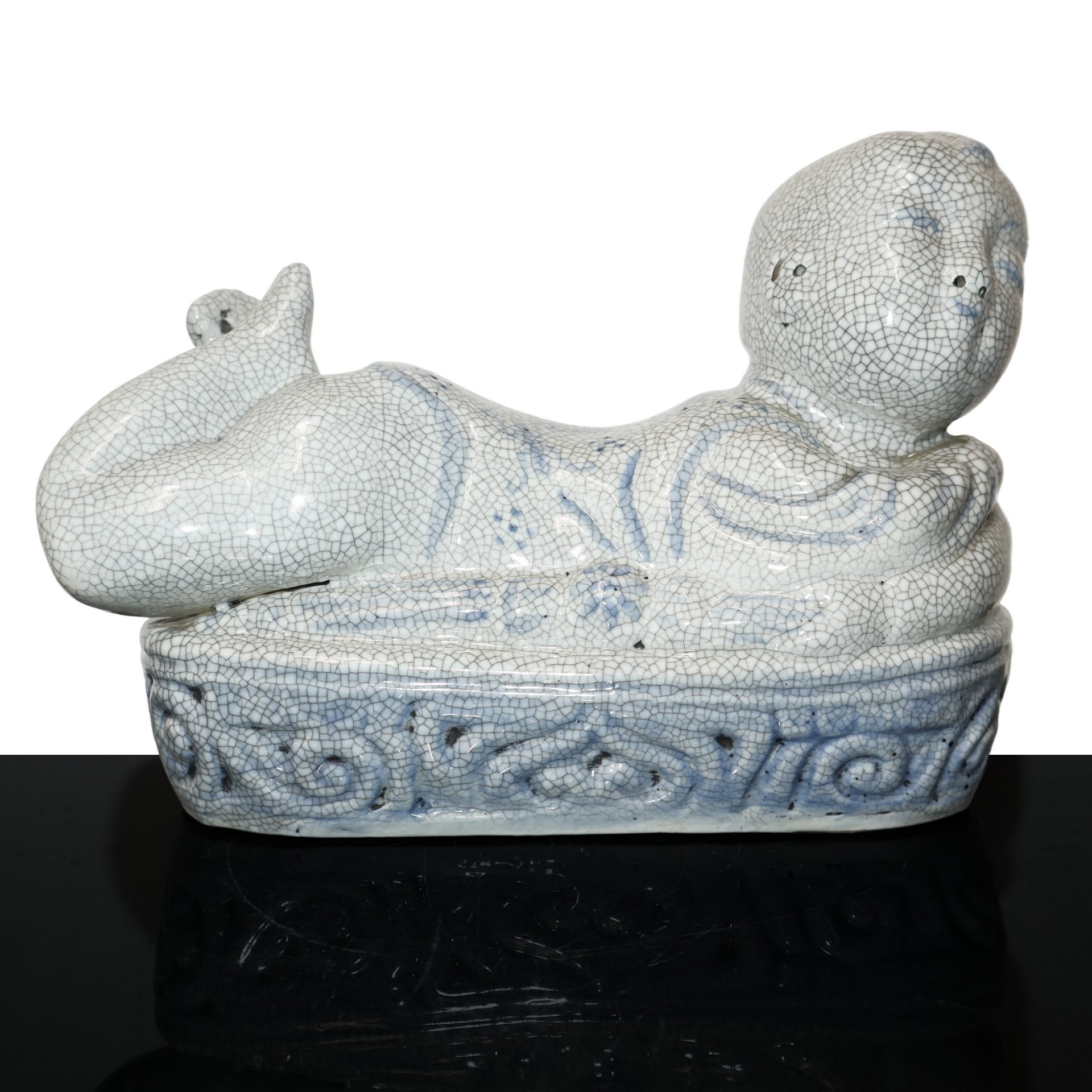 Scaldino in ceramica dalle fattezze di bambino h cm 17X26X12