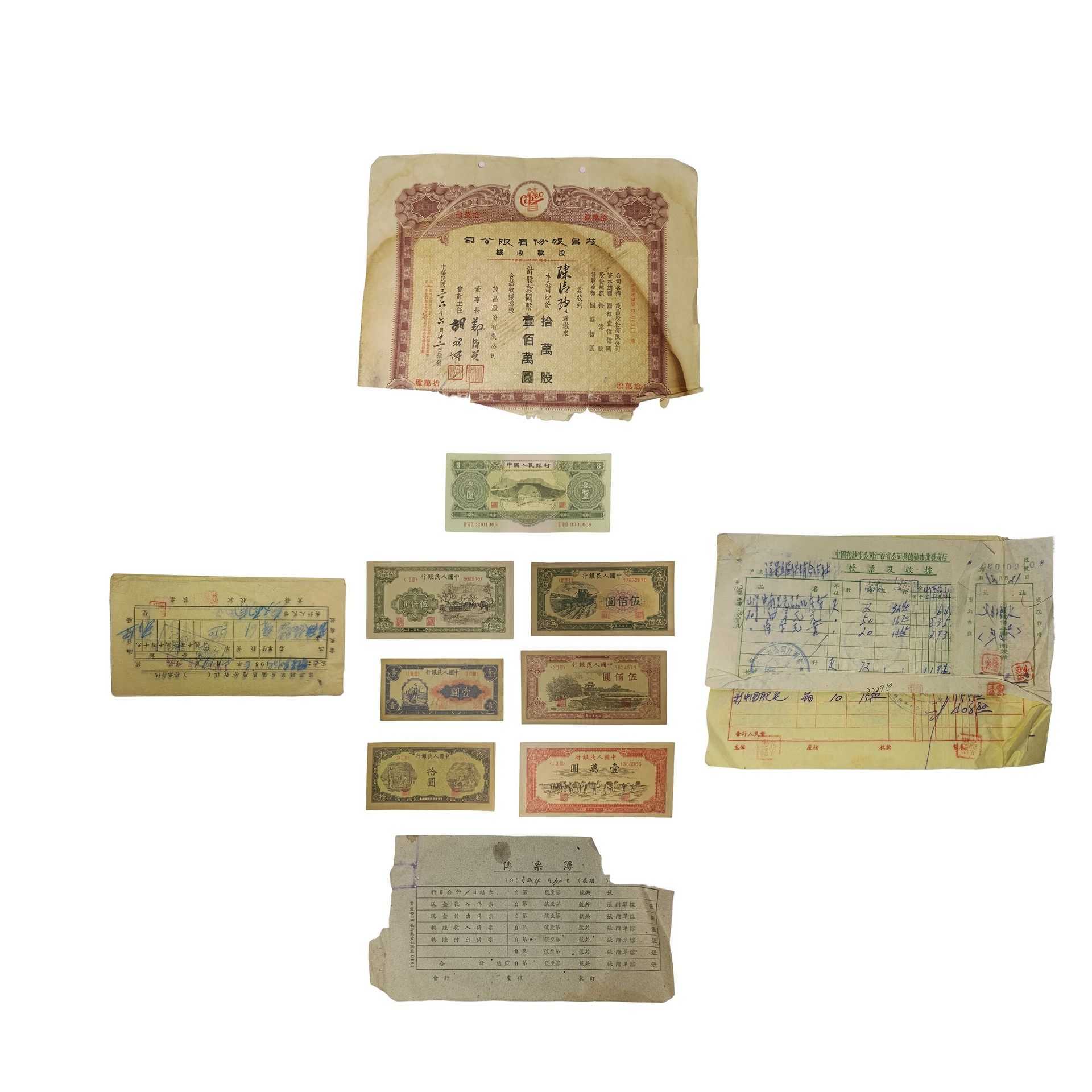 Gruppo di vecchie banconote e vecchi documenti cinesi, First half of the 20° secolo