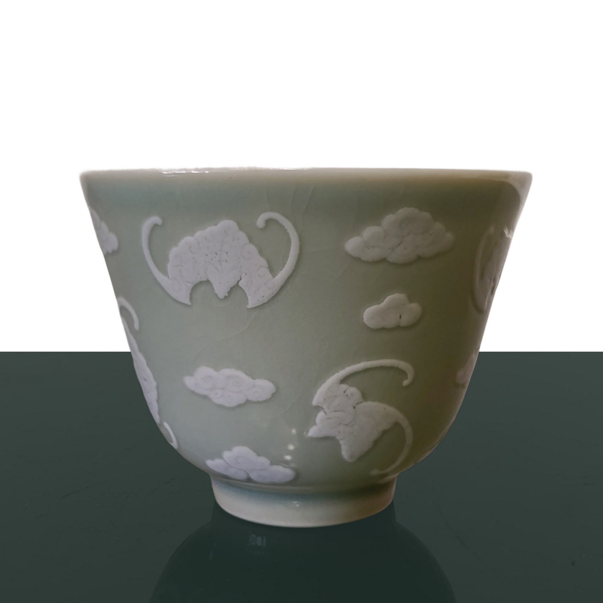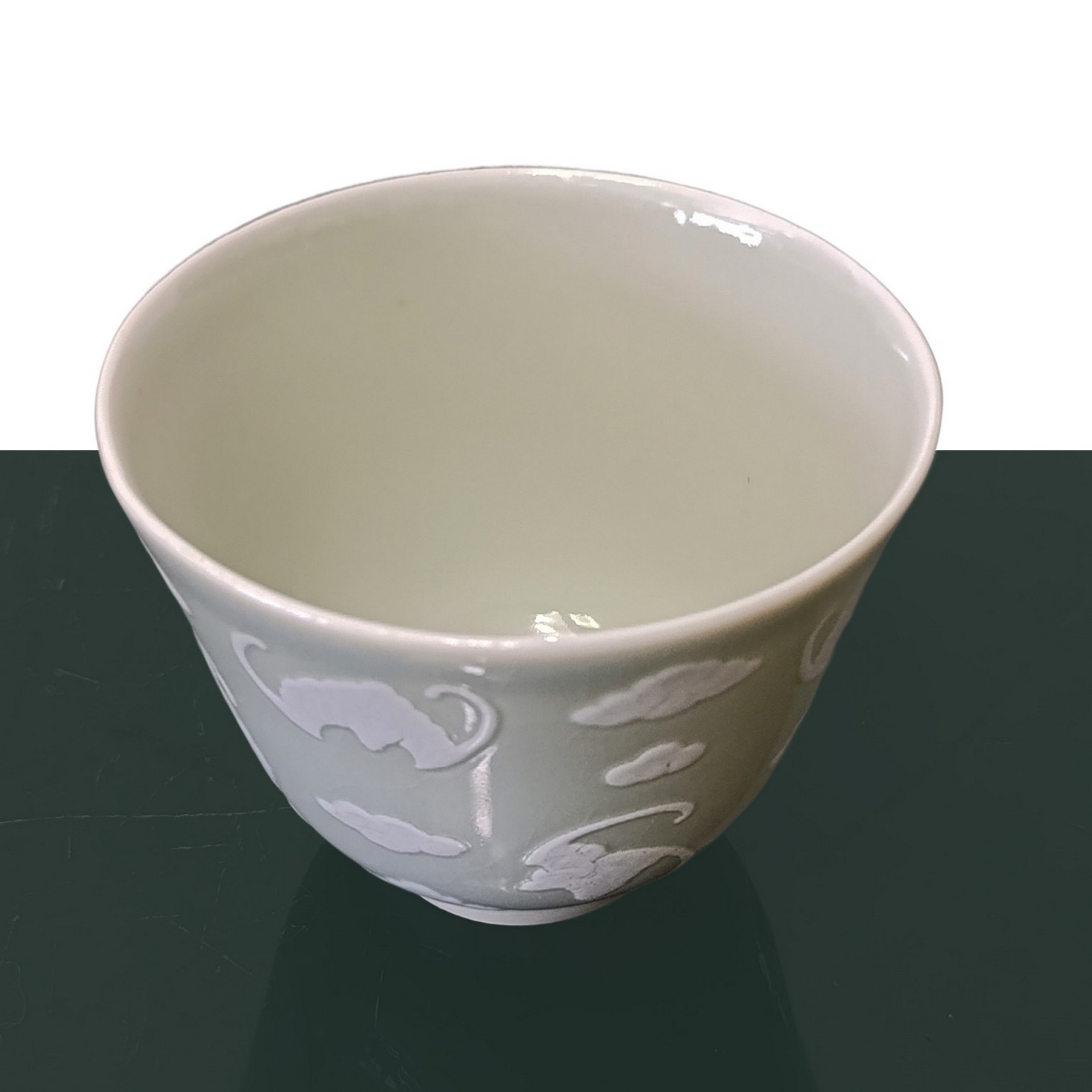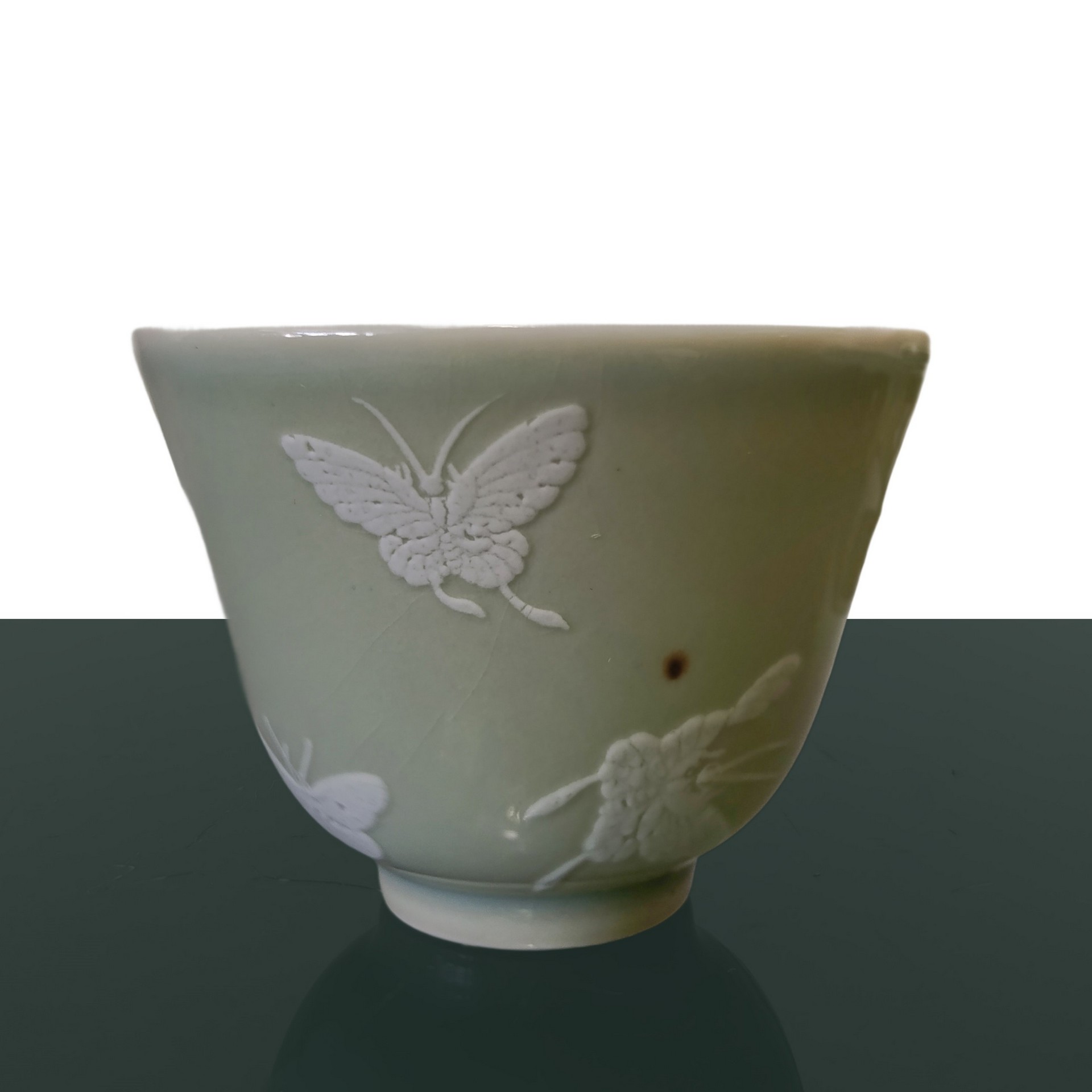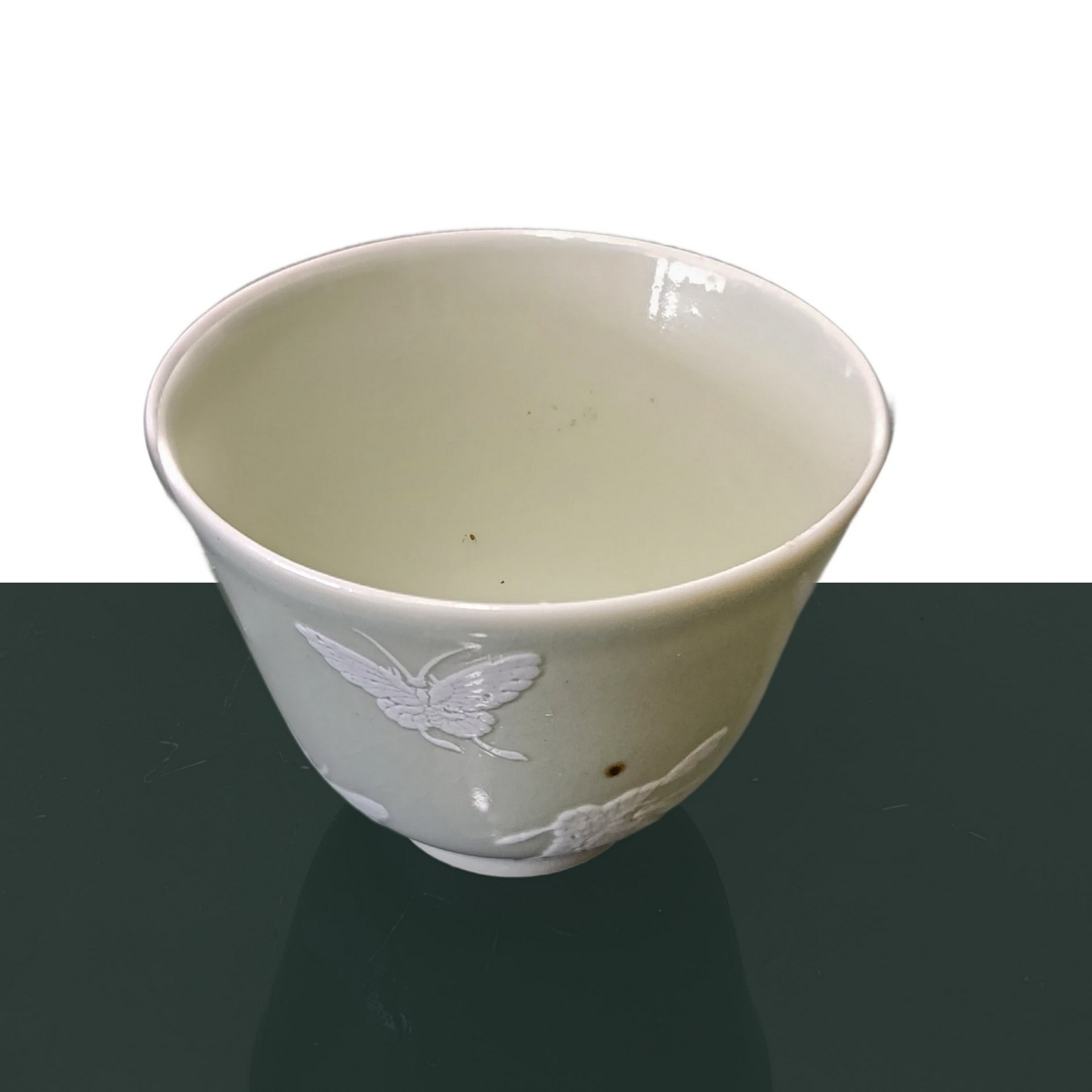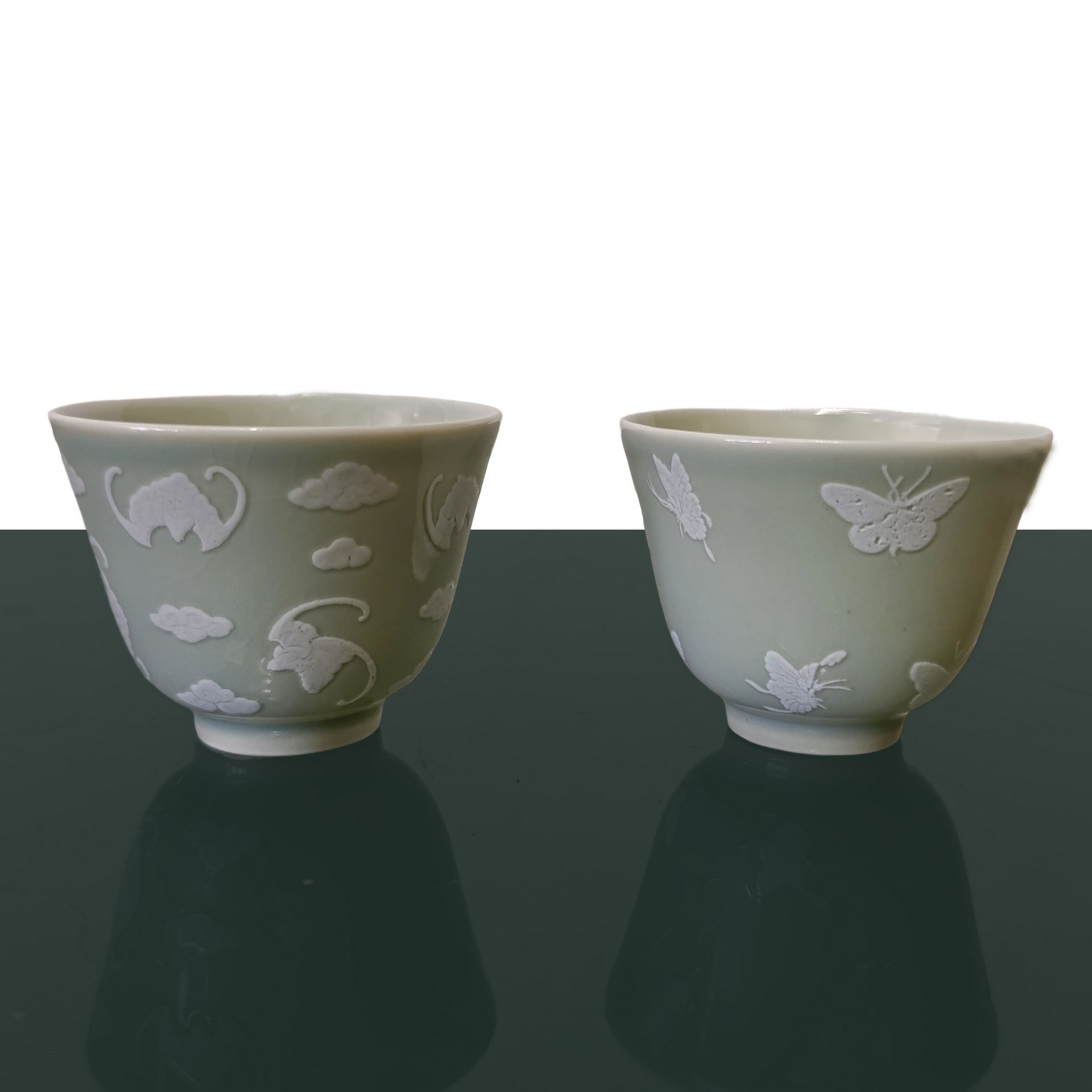 Piccole ciotole con decori bianchi di farfalle in rilievo, Repubblica , periodo 20° secolo