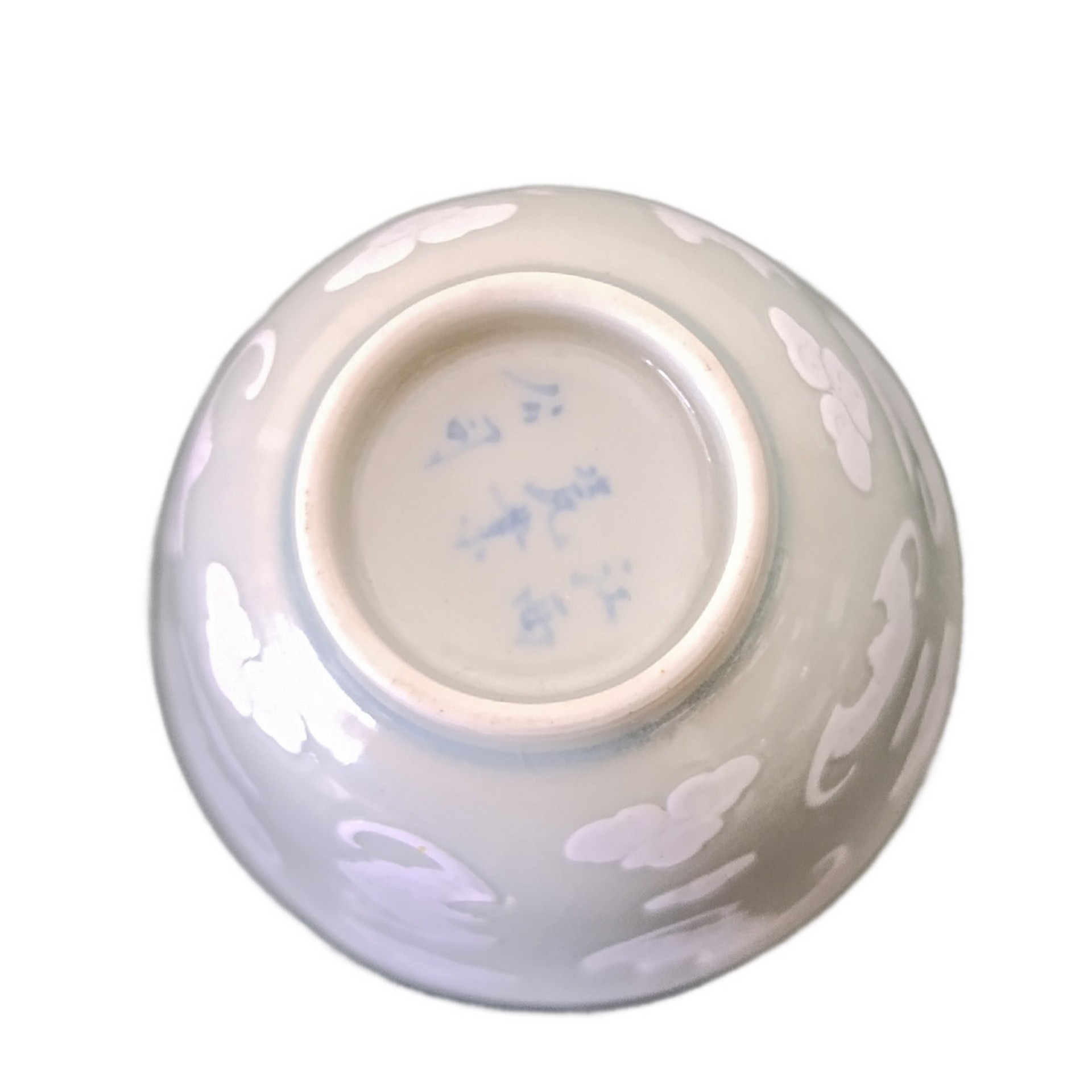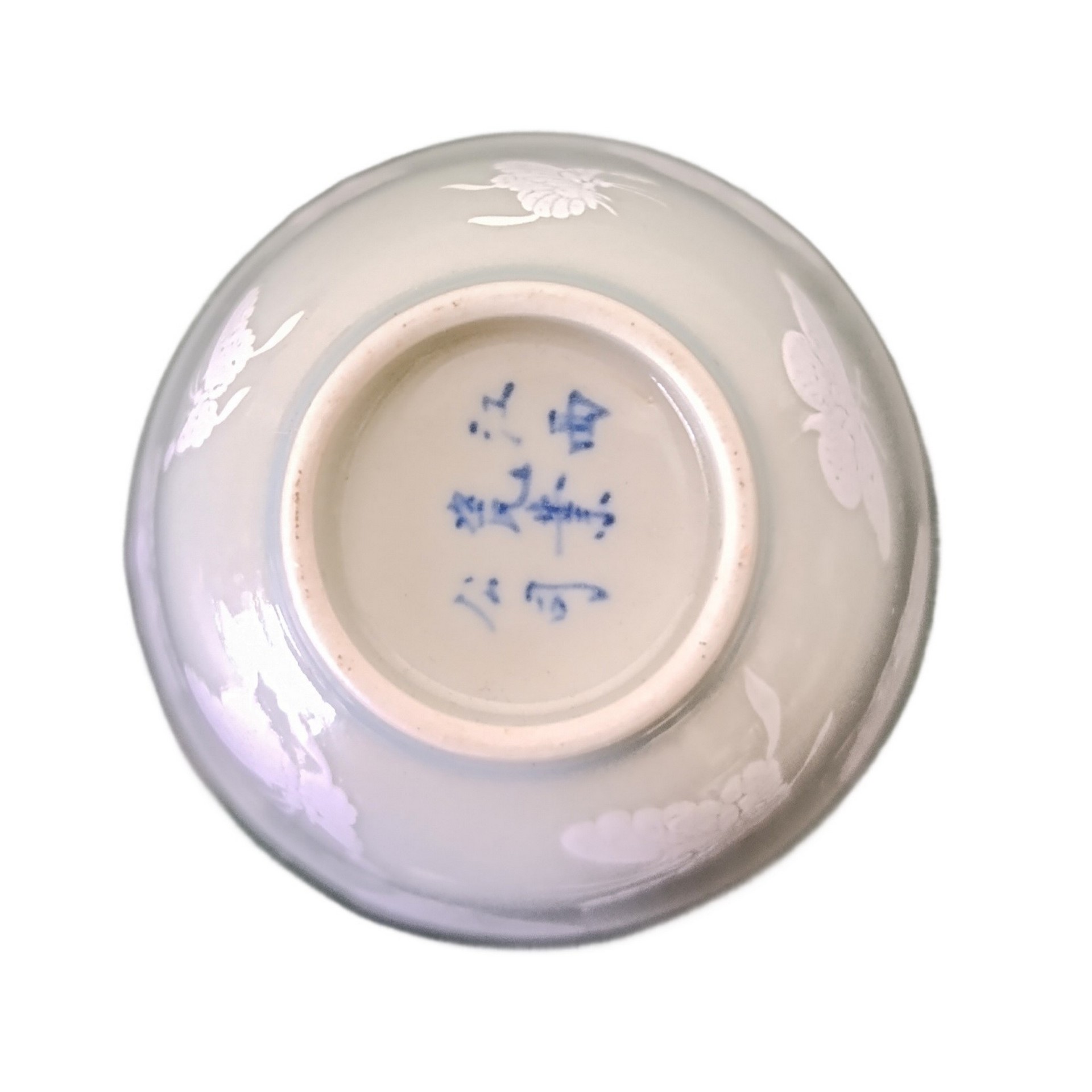 Piccole ciotole con decori bianchi di farfalle in rilievo, Repubblica , periodo 20° secolo h cm 6 diametro cm 7