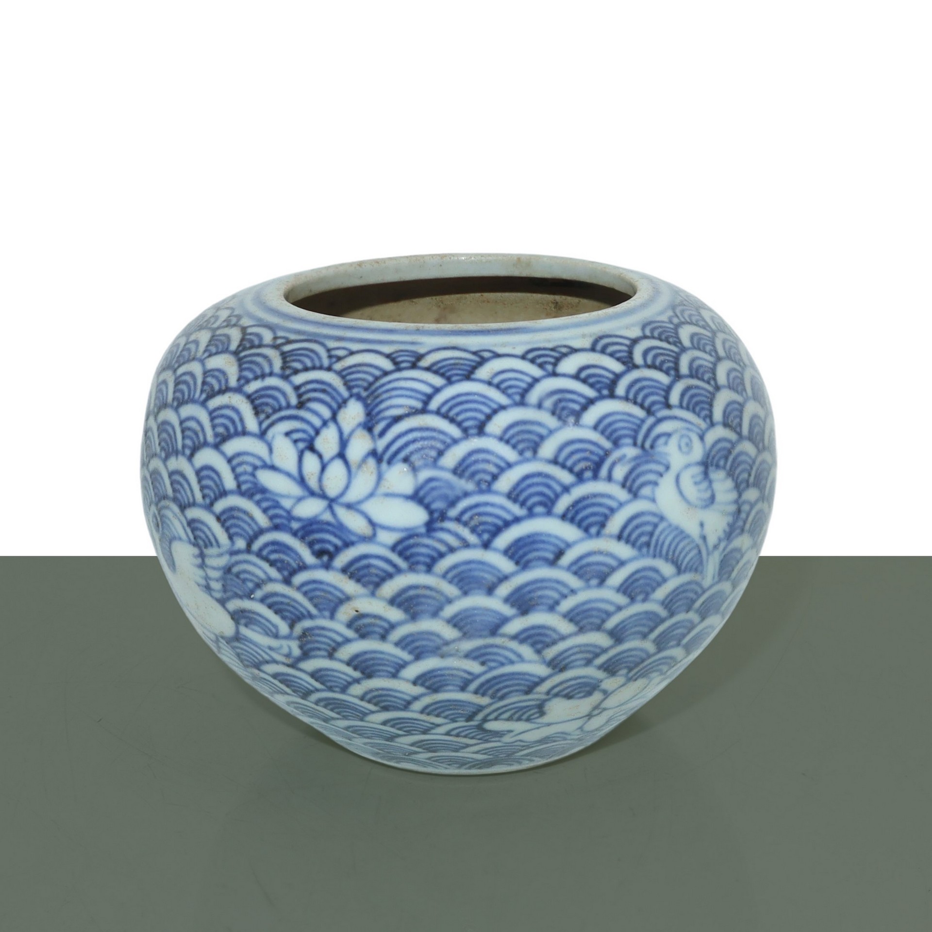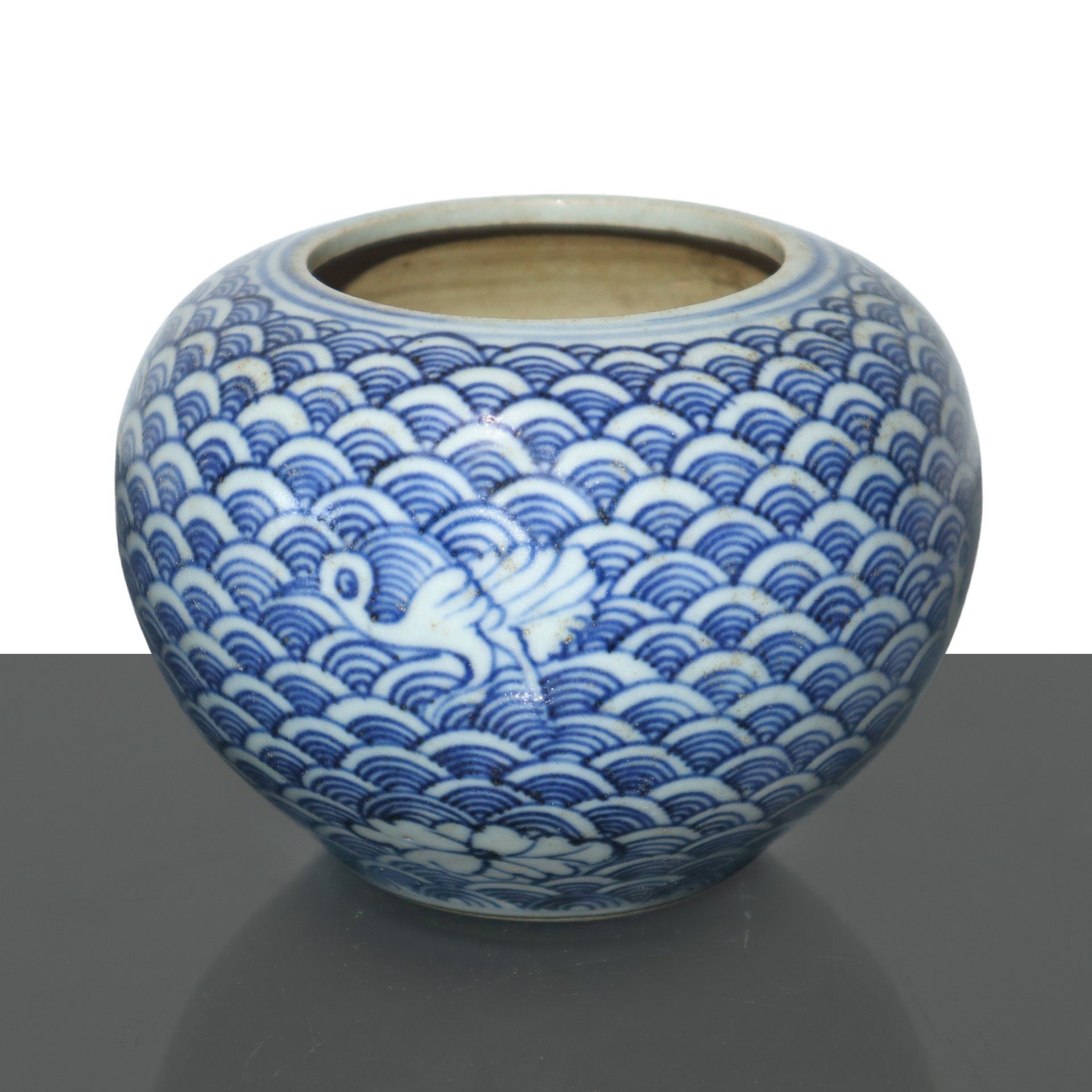 Lotto 240 | Lavapennelli nei toni blu e bianco con motivi a scaglie di pesce