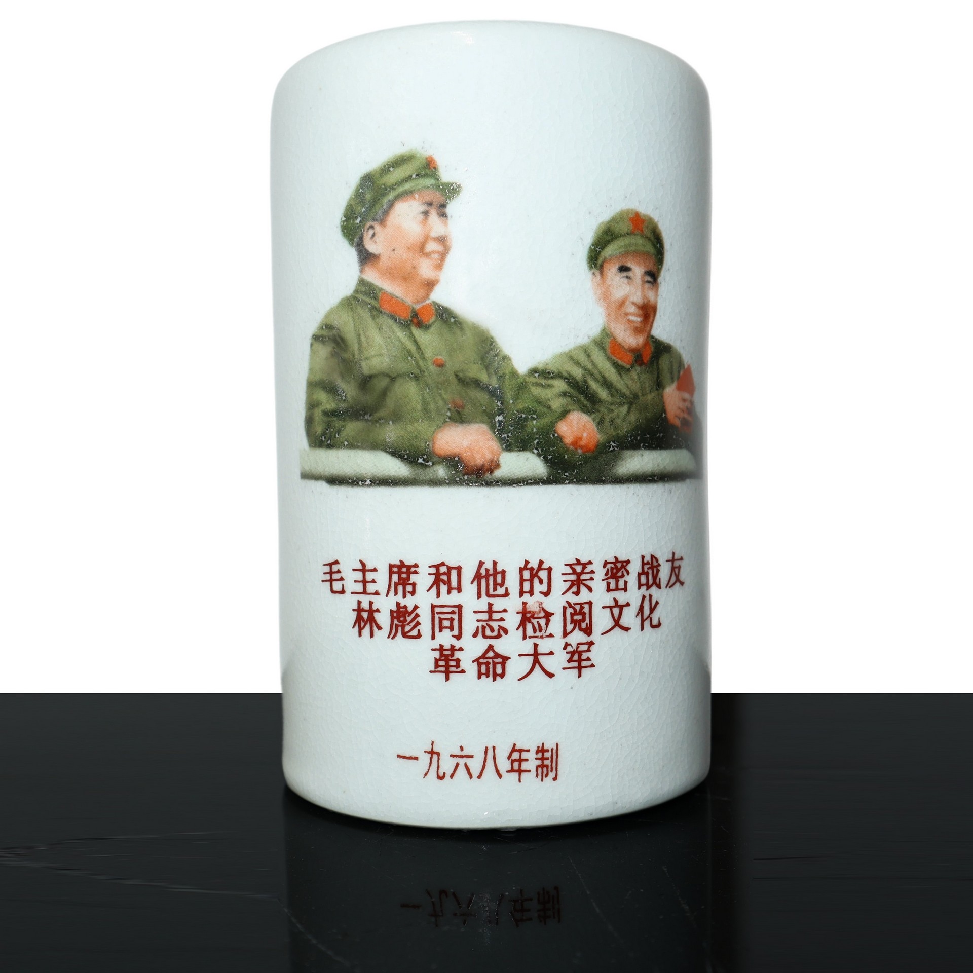 Lotto 242 | Portapennelli con raffigurazione di Mao Zedong e Zhou Enlai ed iscrizioni cinesi