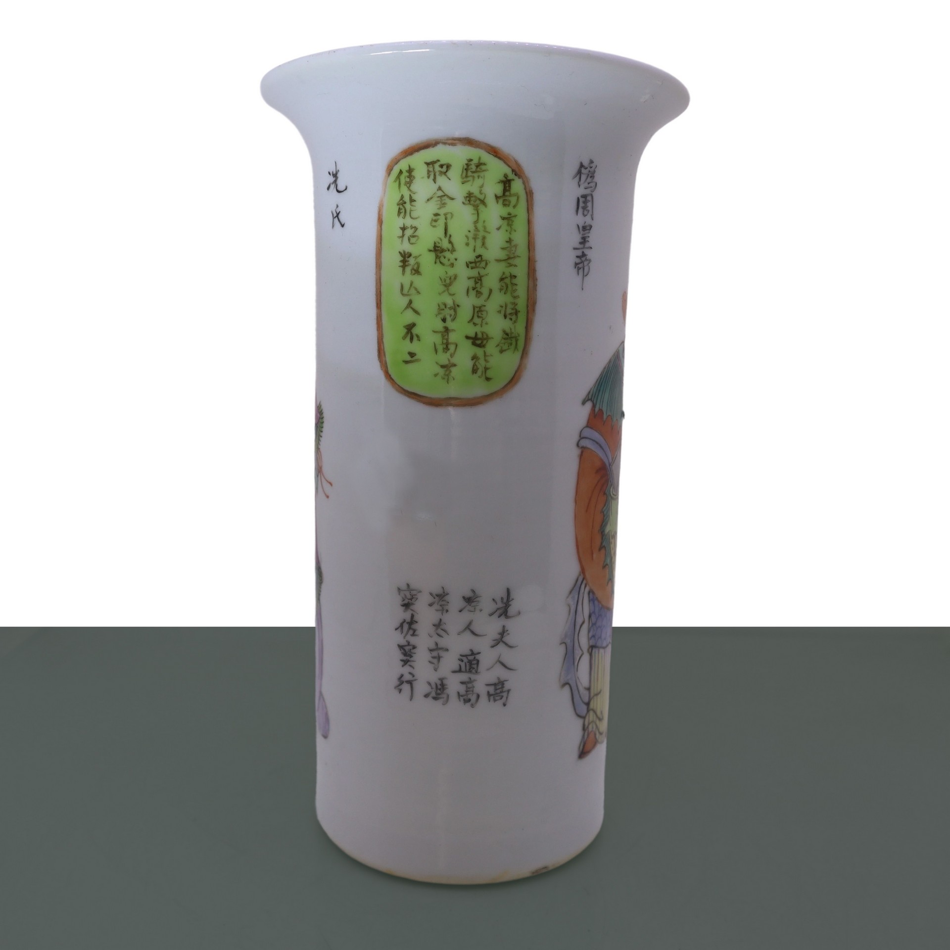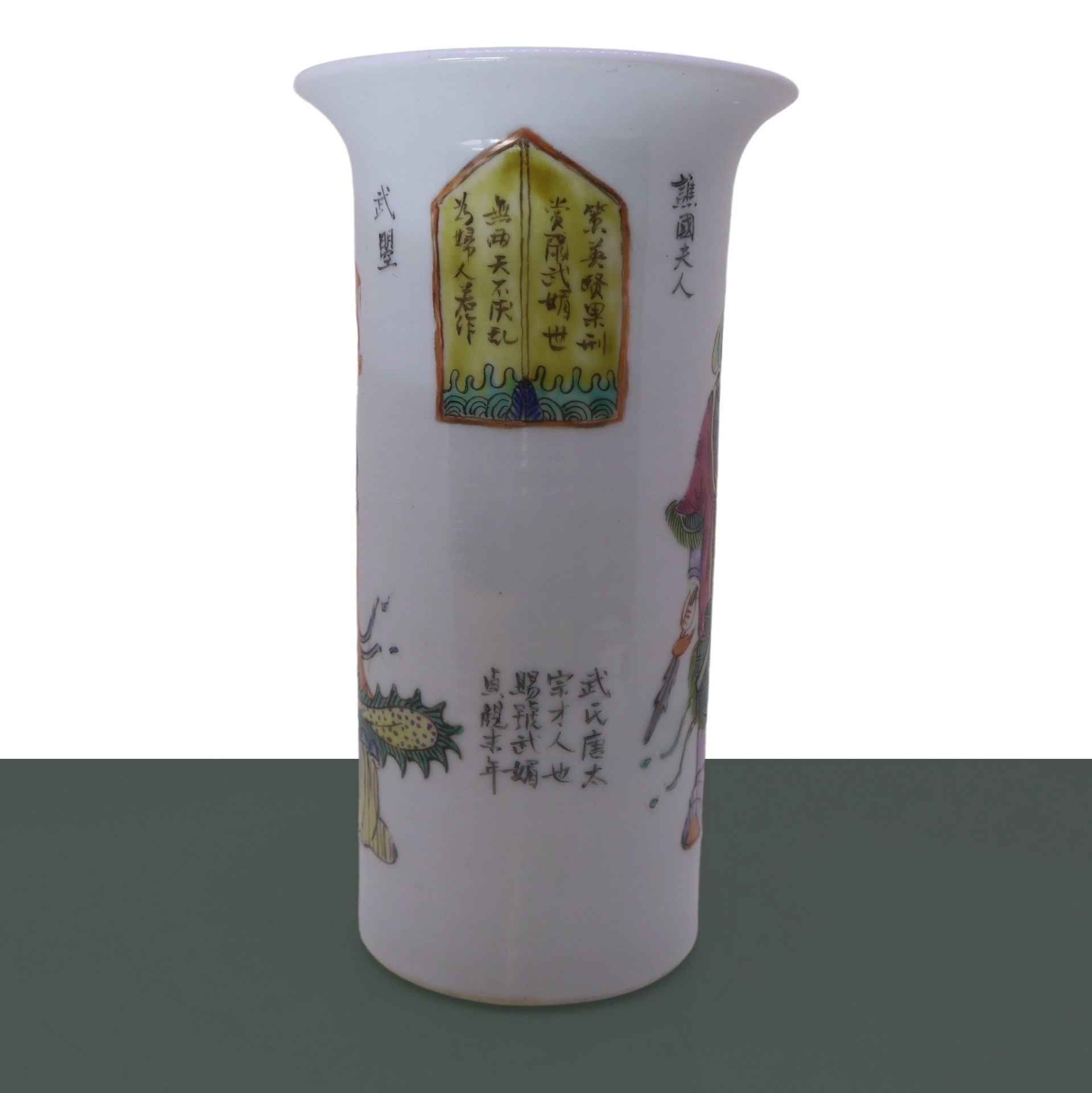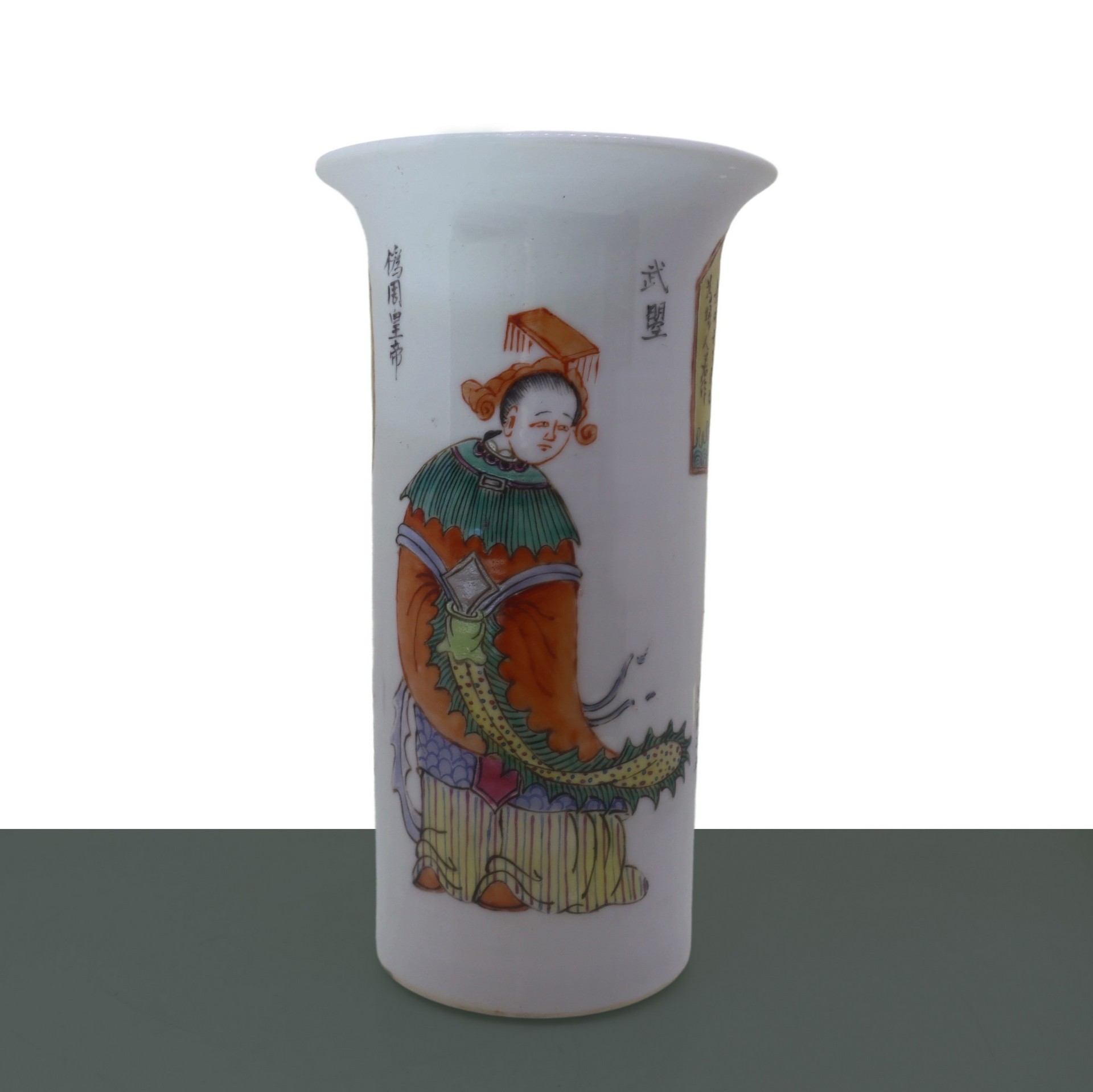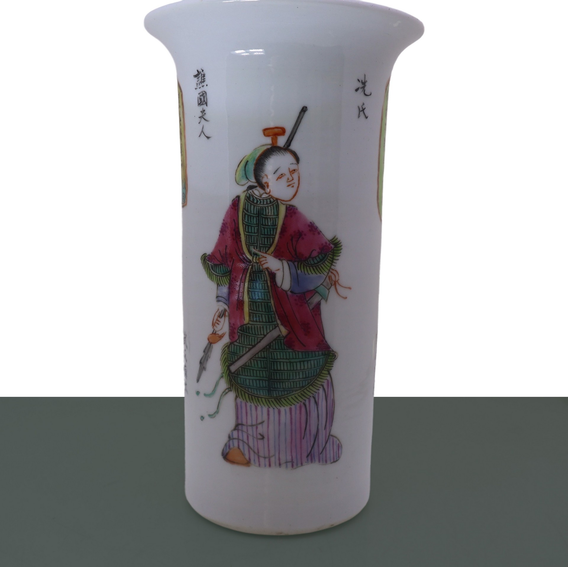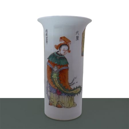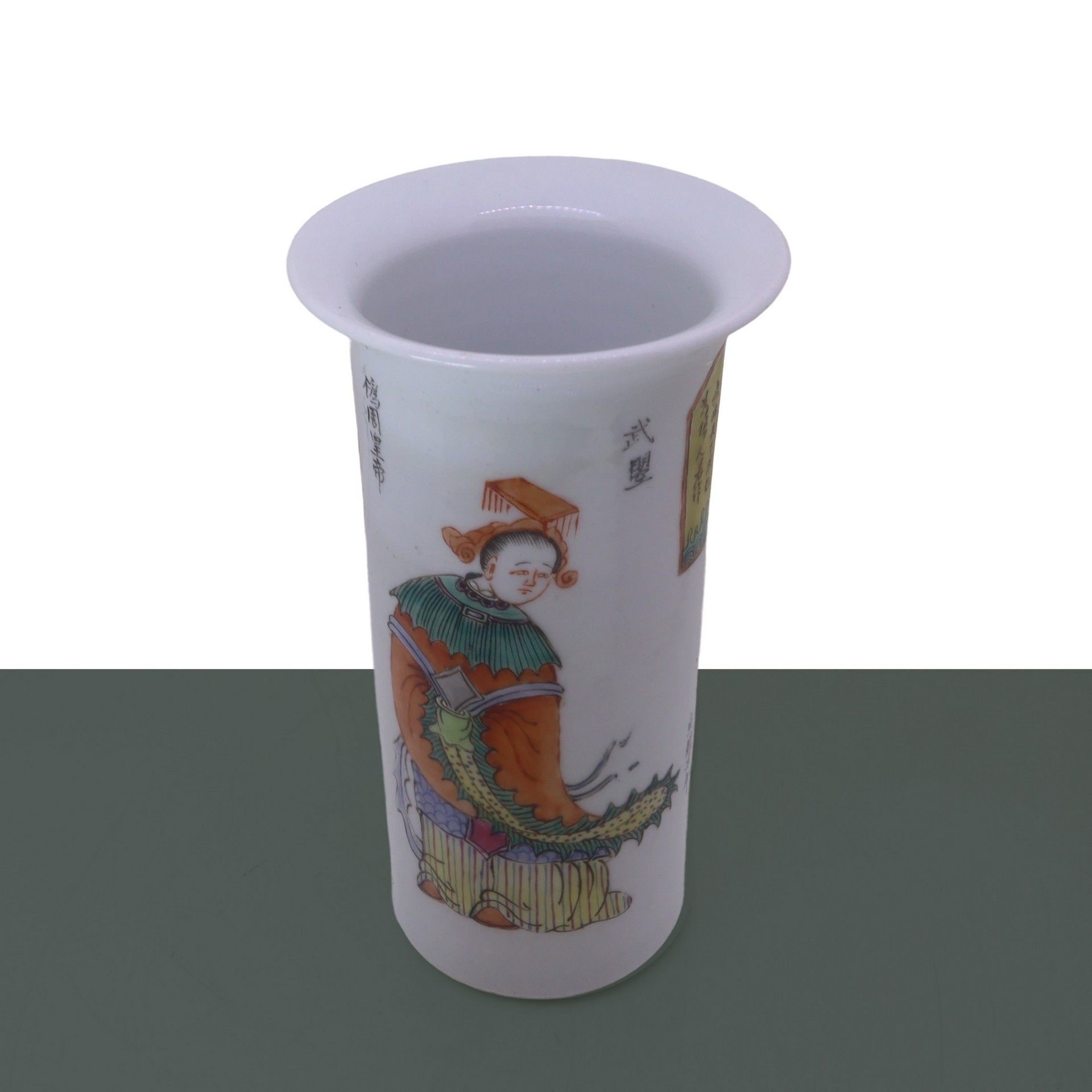 Portapennelli con personaggi policromi e iscrizioni, Repubblica of Cina h cm 17,8 cm diametro 9,5 cm