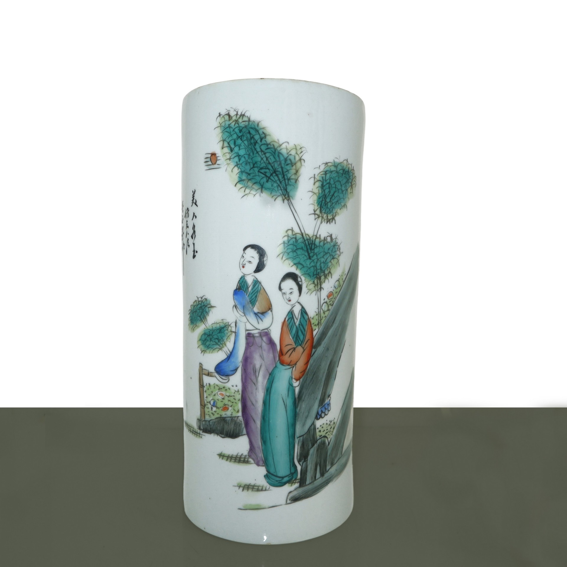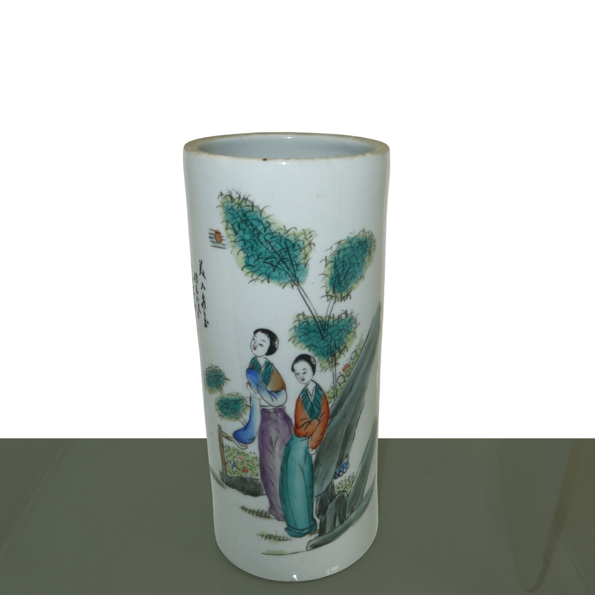 Portapenne con raffigurazioni di celebrità e dipinti cinesi, Repubblica of Cina h cm 27,7 x diametro cm 11,7
