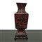 Coppia di vasi cinesi con lacca rosso cinabro e con decorazioni floreali intagliate H cm 24x10.5 - con base: H cm 28