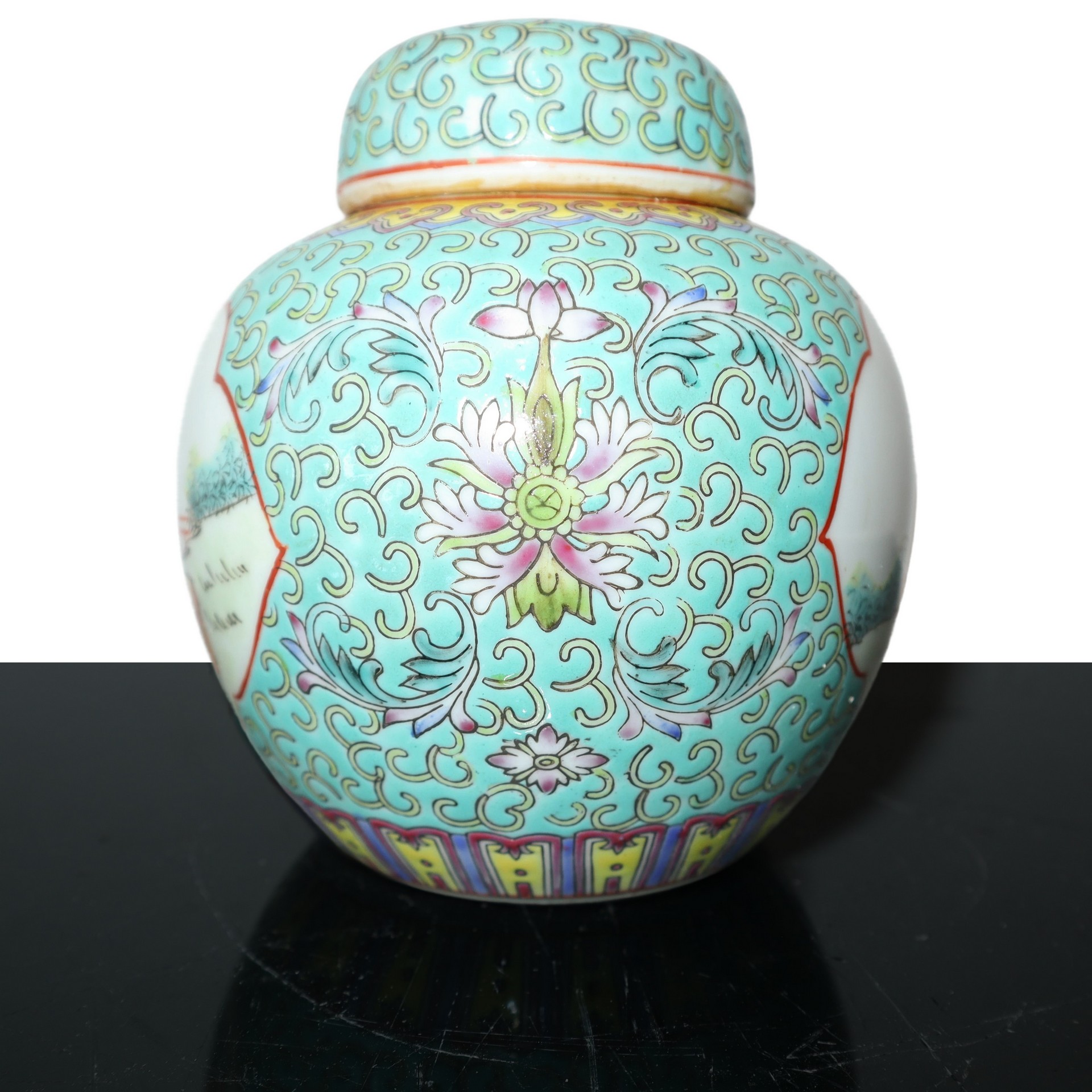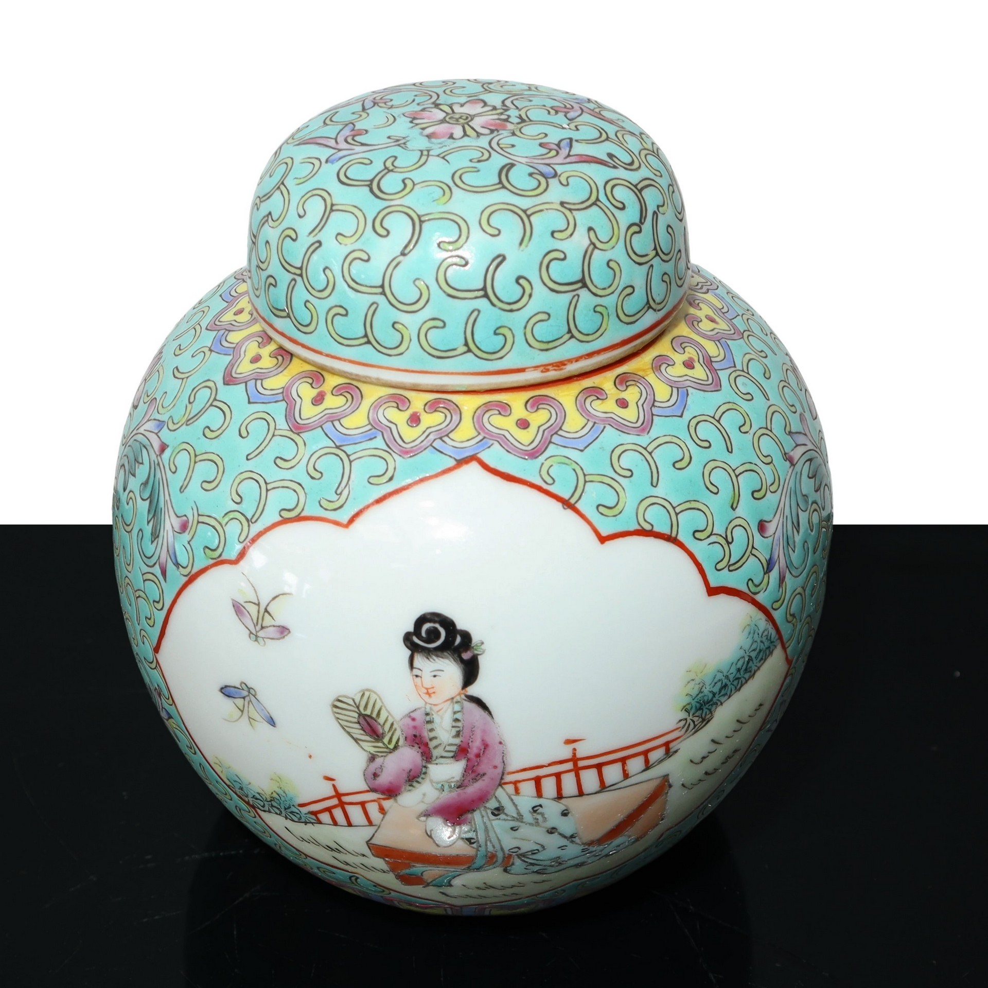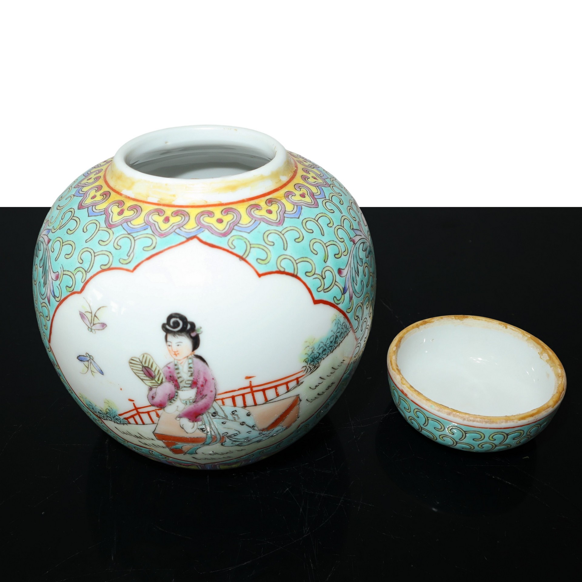 Poutiche cloisonnet portazenzero con scene di genere sul fronte e sul retro
