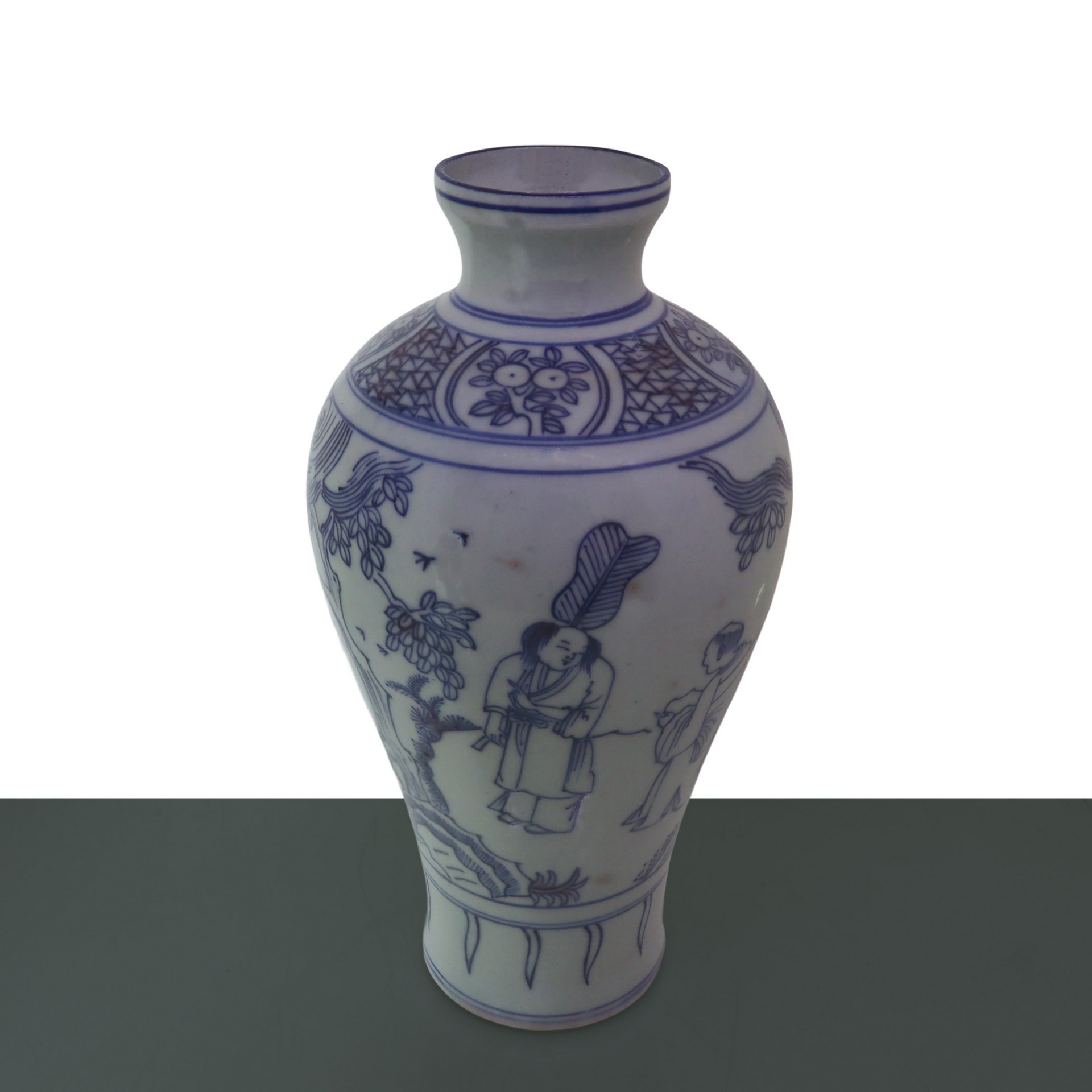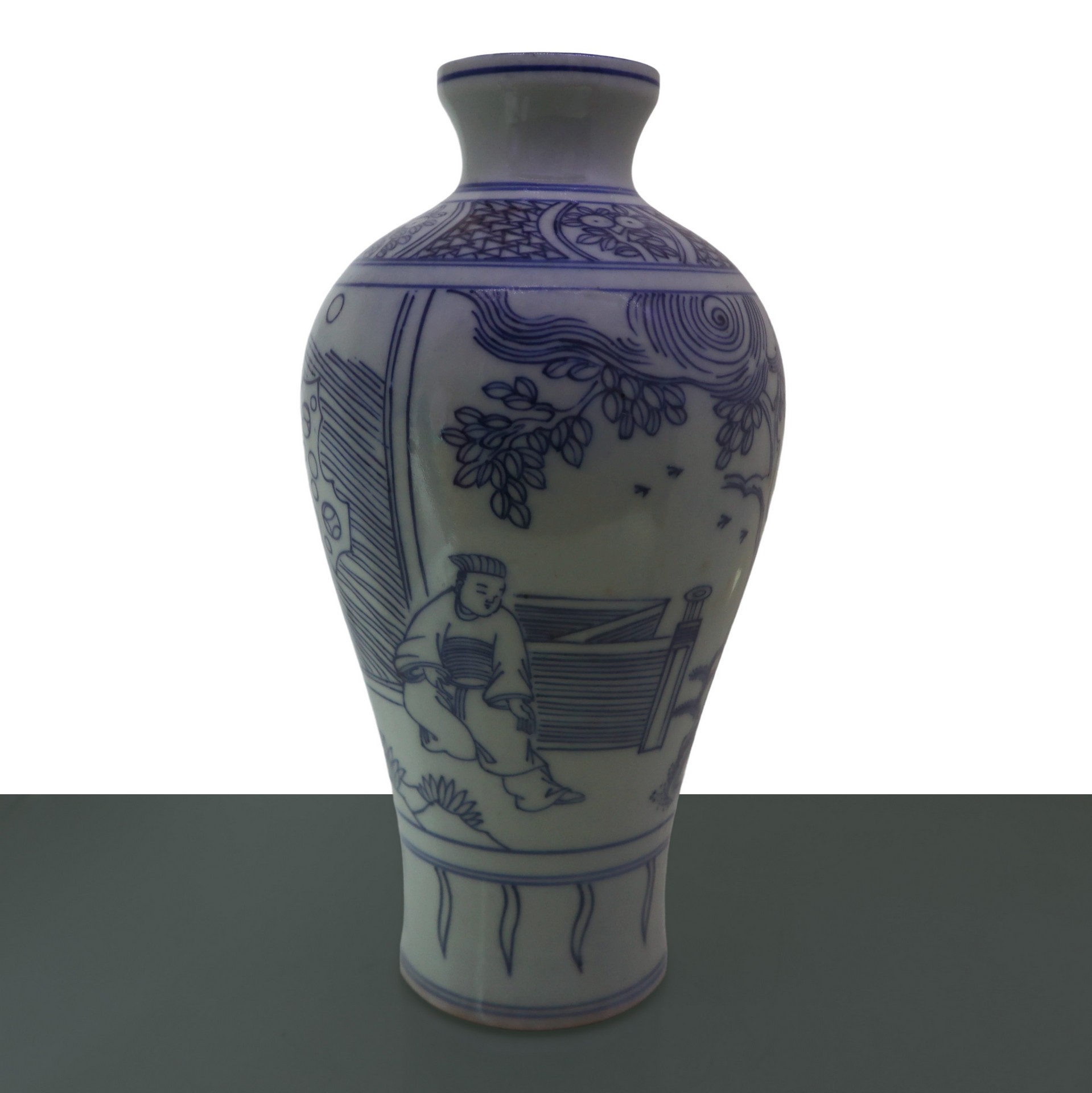Bottiglia in stile dinastia Qing, nei toni bianco e blu con raffigurazione di personaggi, 19° secolo